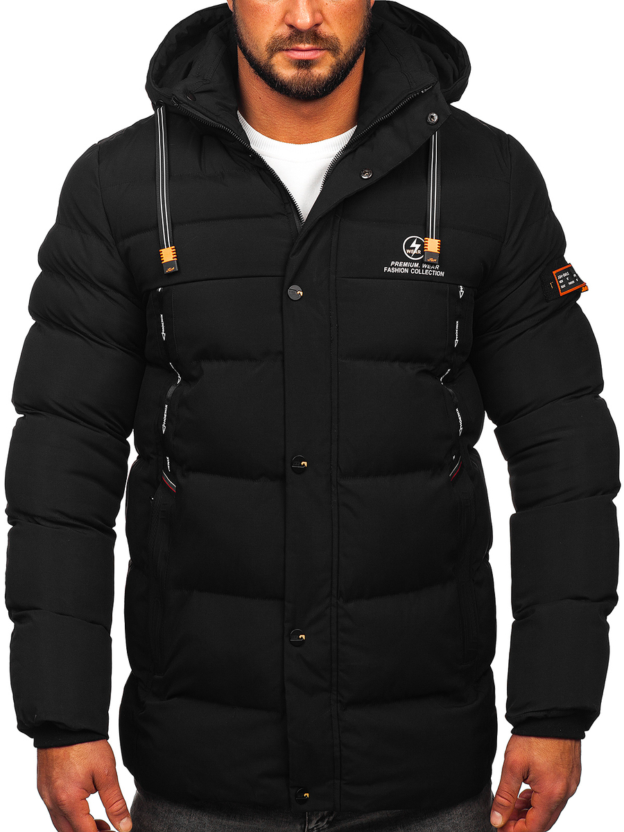 Черно дълго капитонирано мъжко зимно яке Bolf 22M53