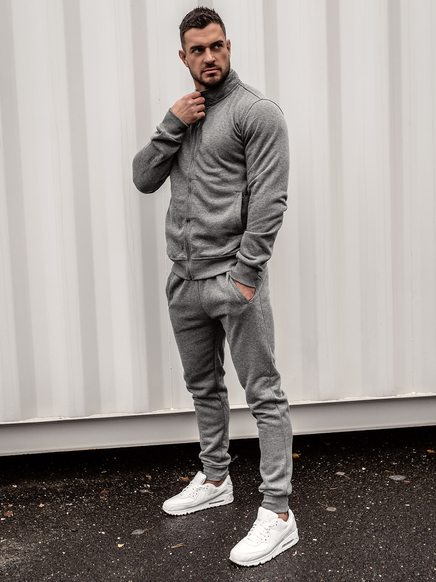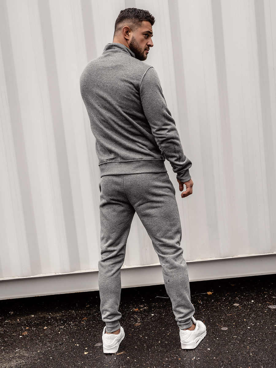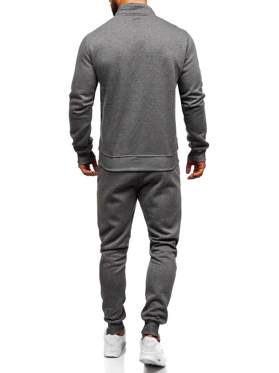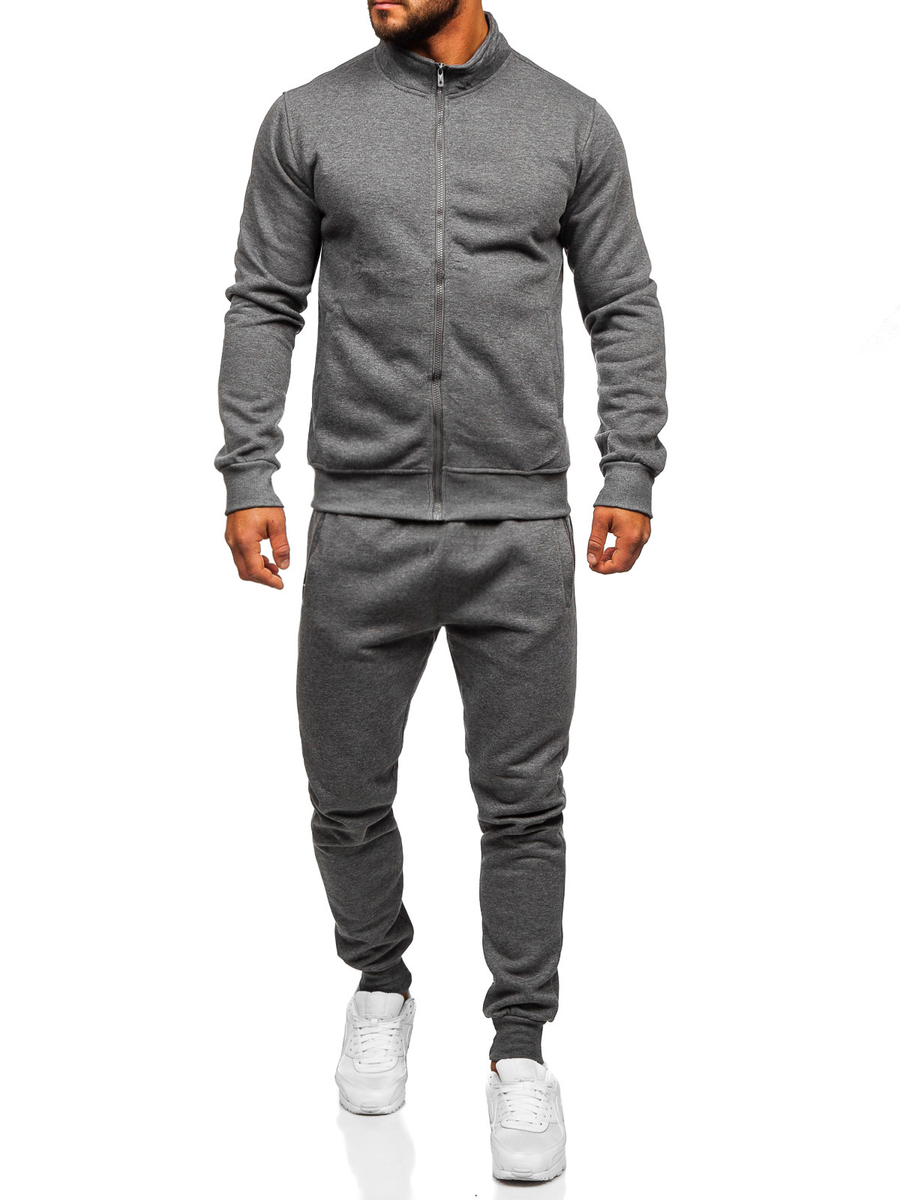Мъжкият графитен анцуг Bolf 10385е спортен комплект, който включва суичър и долнище. Суитшърт с цип и външни джобове. Долнището се регулира в кръста с широк ластик и връзки, има два външни джоба. Спортен характер му придава опростената, вталена кройка. Продуктът е изработен от мека, приятна на допир материя. Може да бъде универсална основа за изграждане на ежедневни или спортни тоалети. Суичърът и панталоните могат да се комбинират с други дрехи, като по този начин се получават много възможности за създаване на ежедневни стилизации. Чудесно се комбинира с тениска , с леко яке, преходно яке или спортно яке.