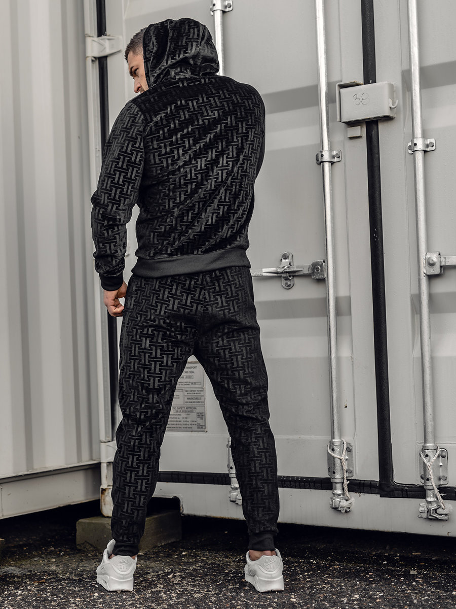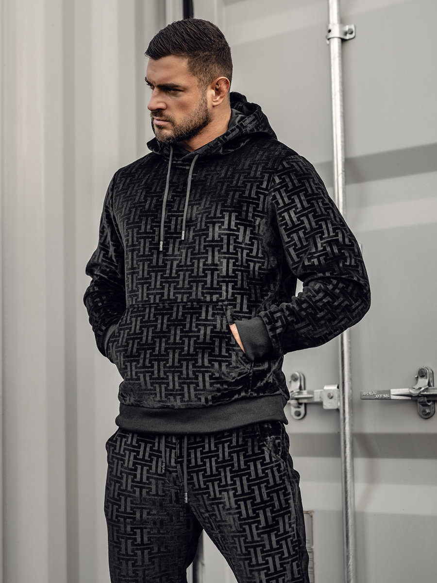 Отзиви и мнения на потребители за Черен мъжки плюшен анцуг с качулка Bolf 3A81-A
