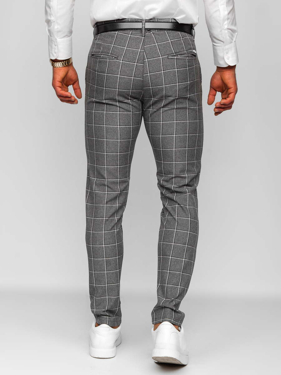 Отзиви и мнения на потребители за Антрацитни карирани мъжки панталони чино Bolf 0044
