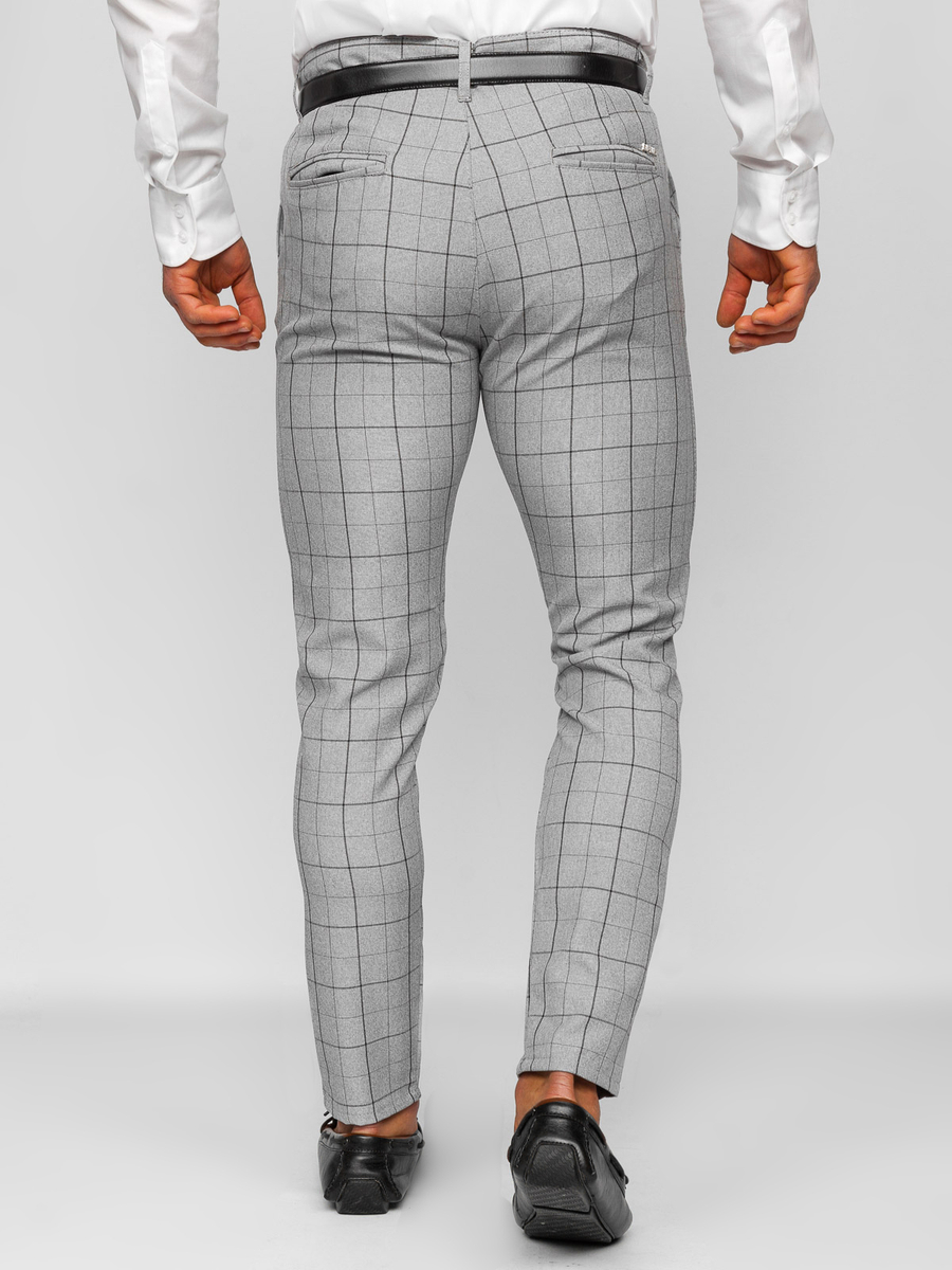 Сивo-черни мъжки карирани чино панталони Bolf 0032