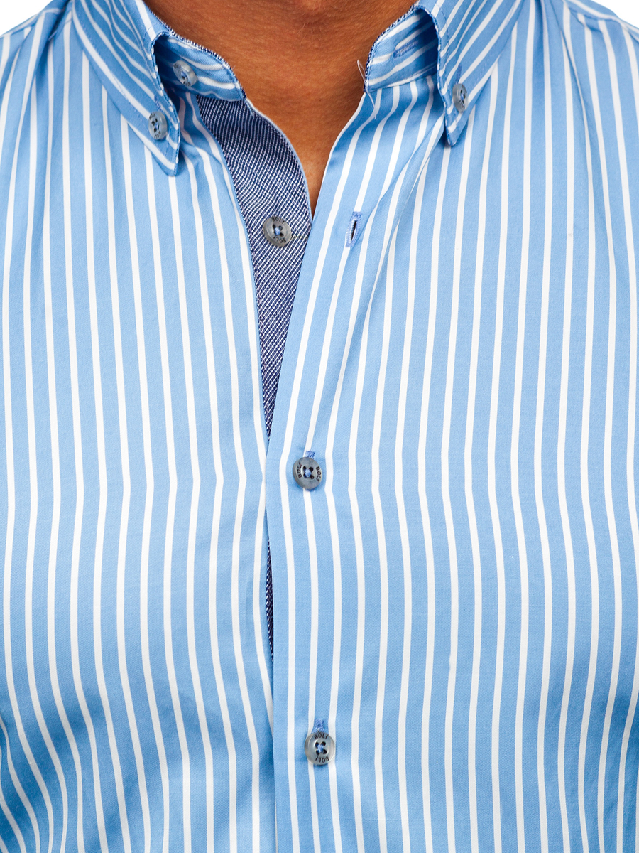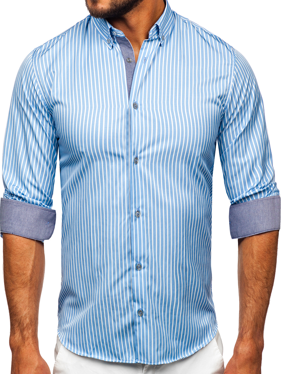 Отзиви и мнения на потребители за Небесносиня мъжка раирана риза с дълъг ръкав Bolf 22730