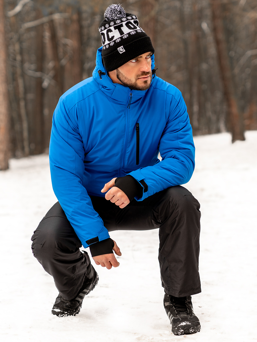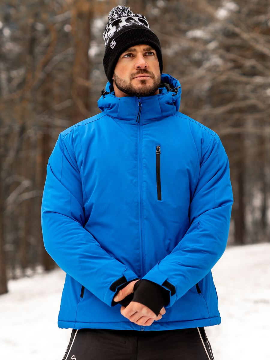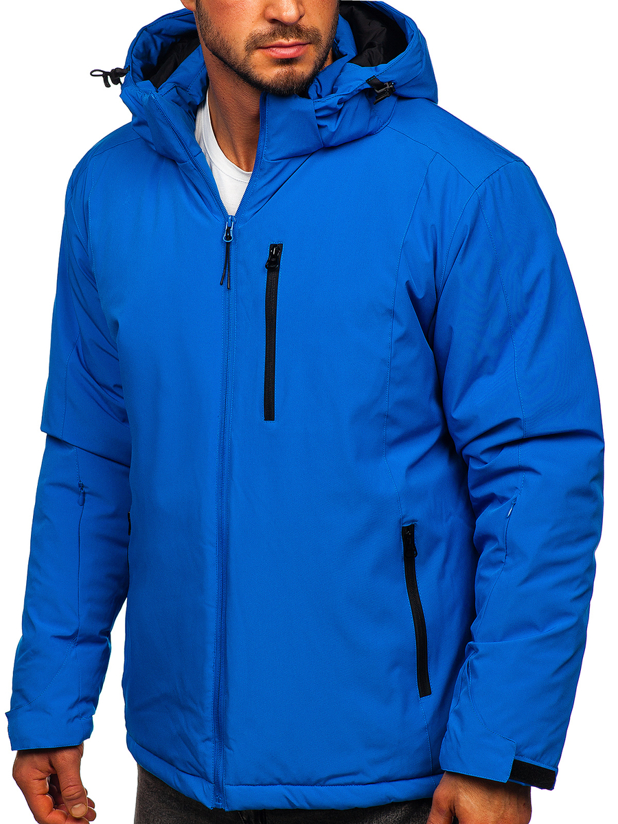 Мъжкото синьо зимно спортно яке Bolf HH011 е чудесен избор за по-хладните месеци. Зимното яке с качулка ще задоволи всеки мъжки вкус. Продуктът се закопчава с цип. Подвижна качулка с регулиране 2D. Високата вдигната яка с цип отлично предпазва от студ. Практичен елемент са джобовете: два странични джоба с цип, джоб на гърдите също с цип и вътрешен джоб с цип. Регулируеми с велкро лента ръкави, завършени отвътре с еластична материя с отвори за палците. Продуктът е универсален, идеален за тренировка, разходка, излизане в града или екскурзия в планината. Изработено е от 94% полиестер и 6% еластан. Чудесно ще изглежда с дънки или спортно долнище.