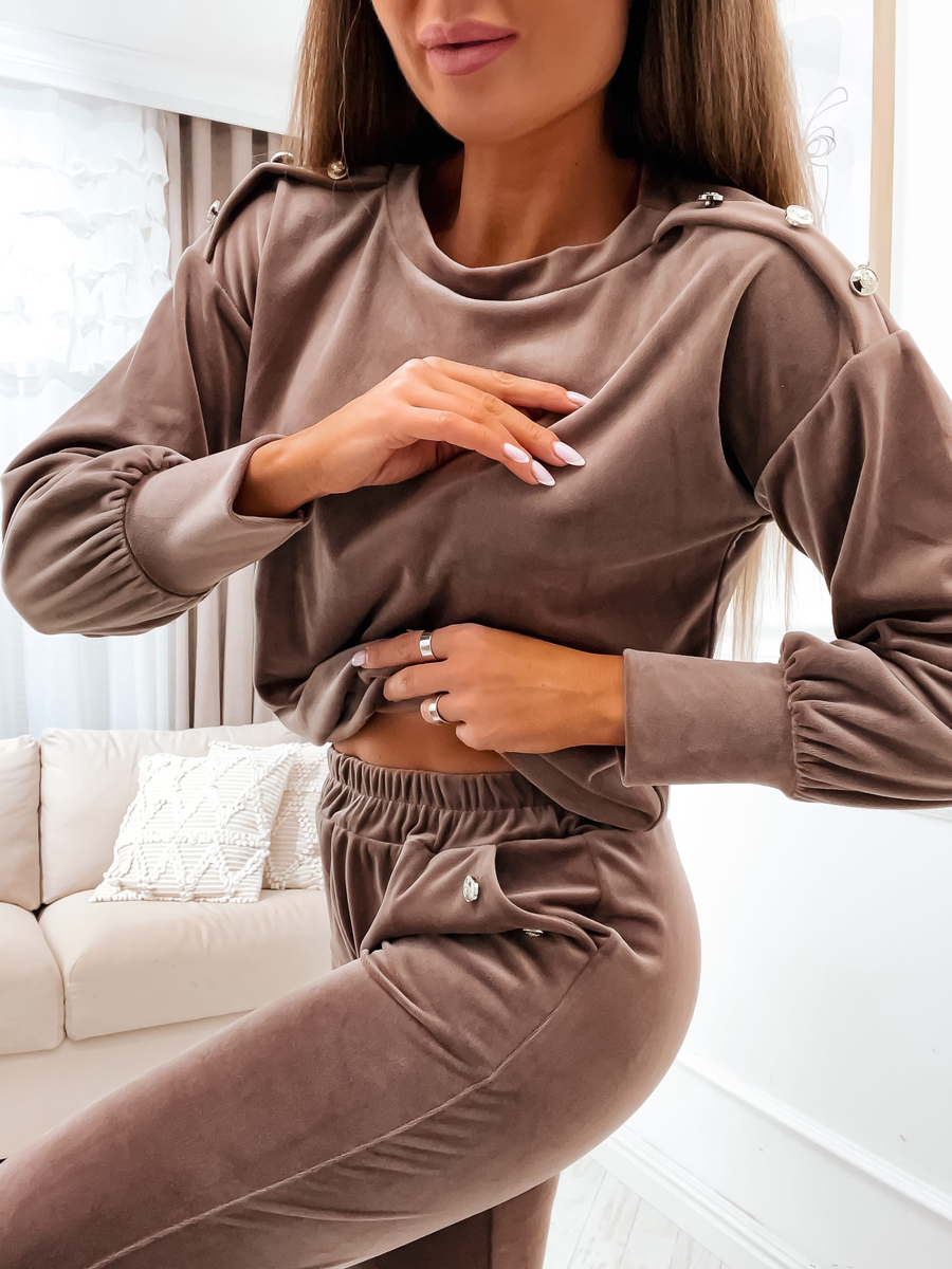 Отзиви и мнения на потребители за Кафяв плюшен дамски комплект от две части Bolf 642