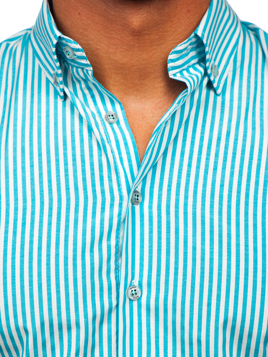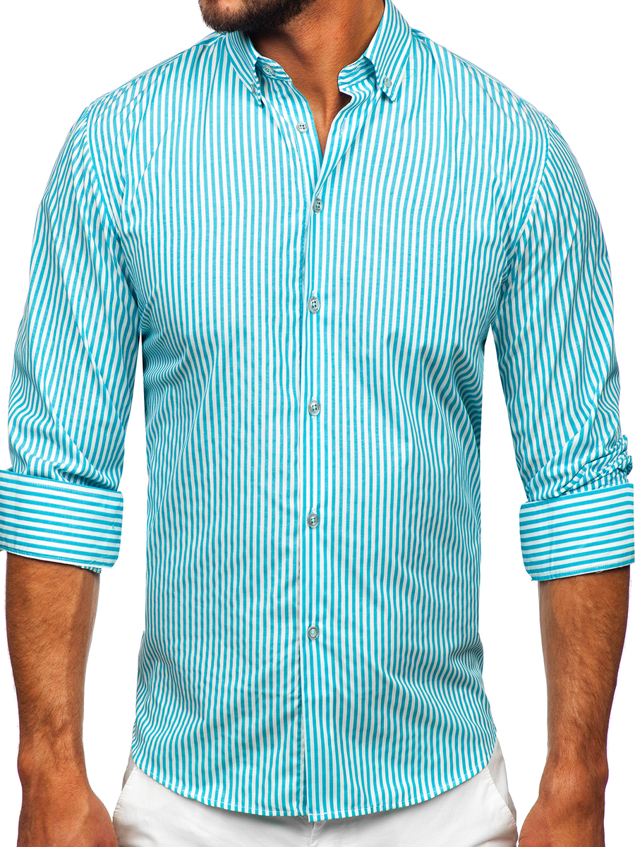 Отзиви и мнения на потребители за Тюркоаз мъжка раирана риза с дълъг ръкав Bolf 22731