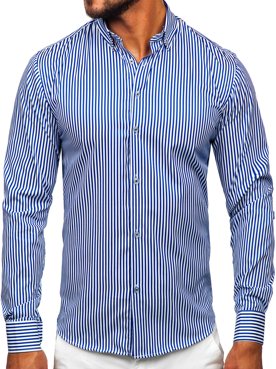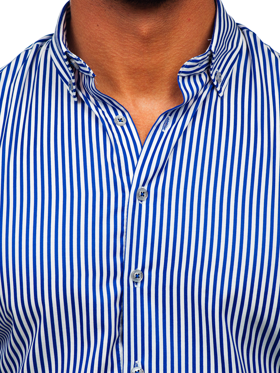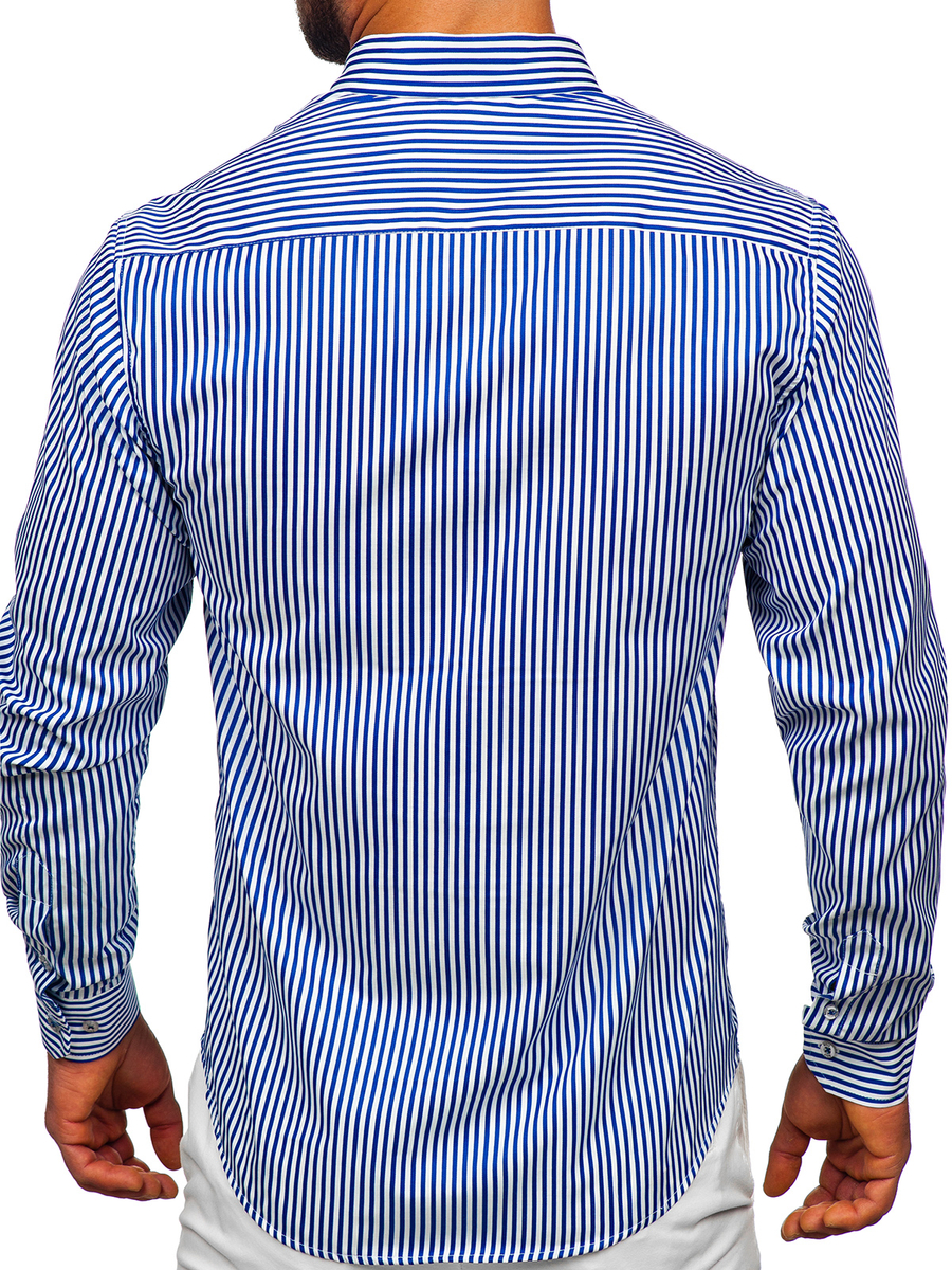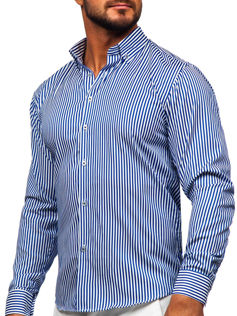 Синя мъжка раирана риза с дълъг ръкав Bolf 22731