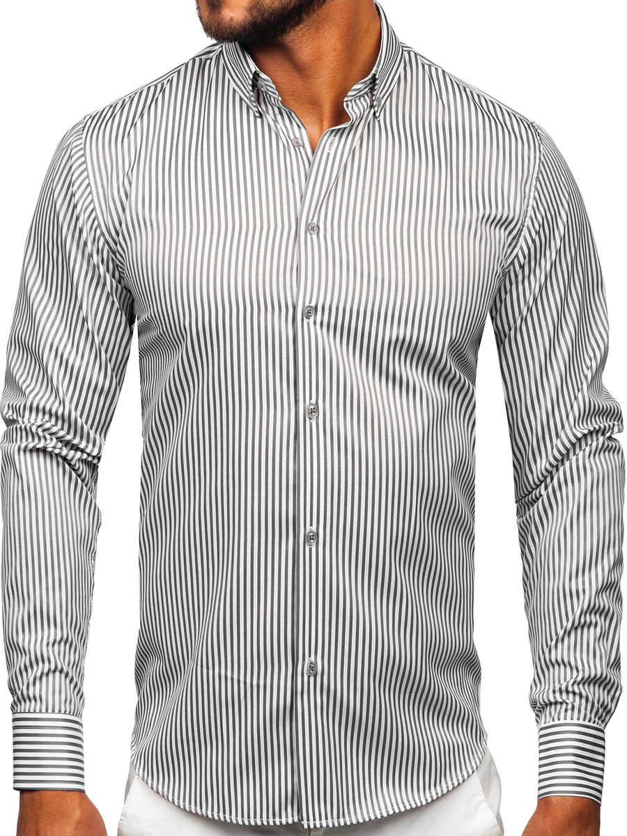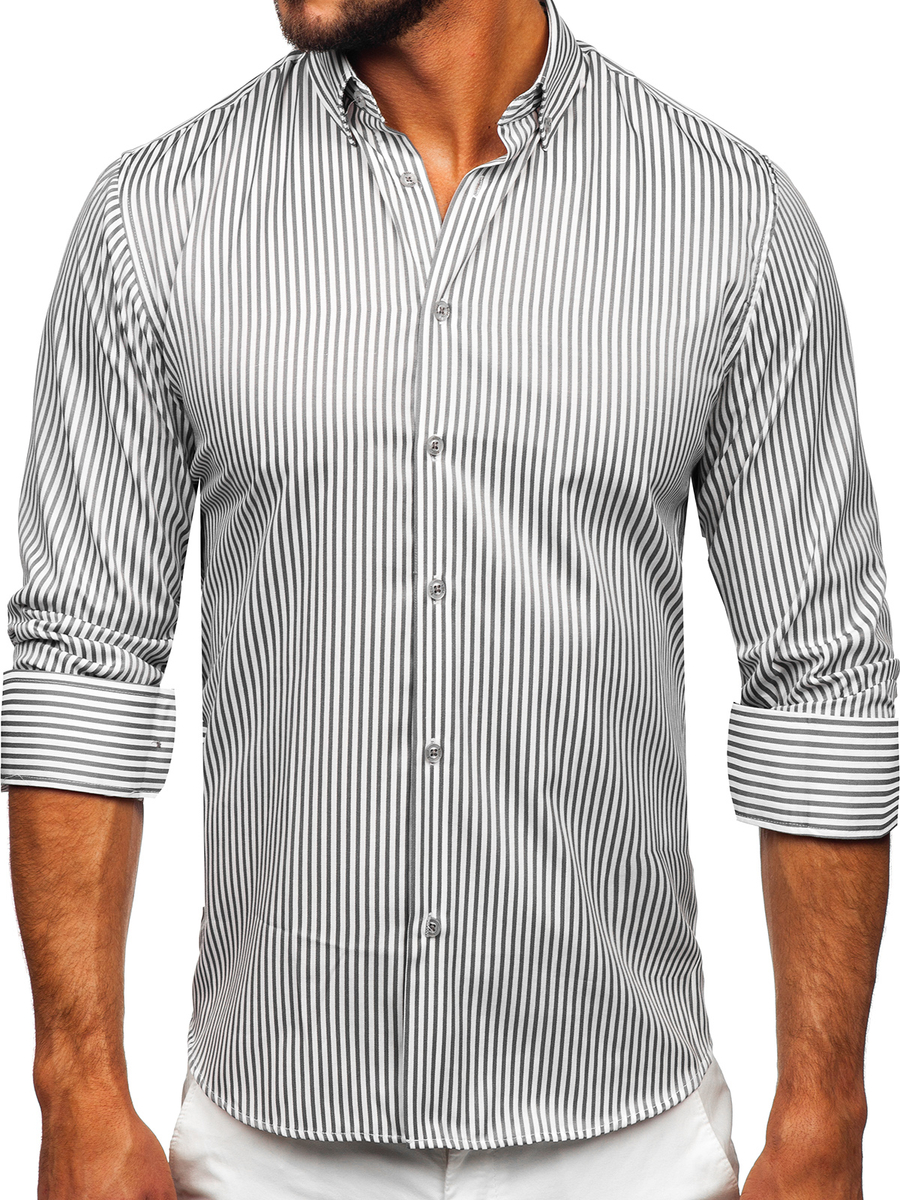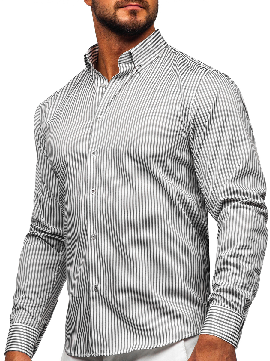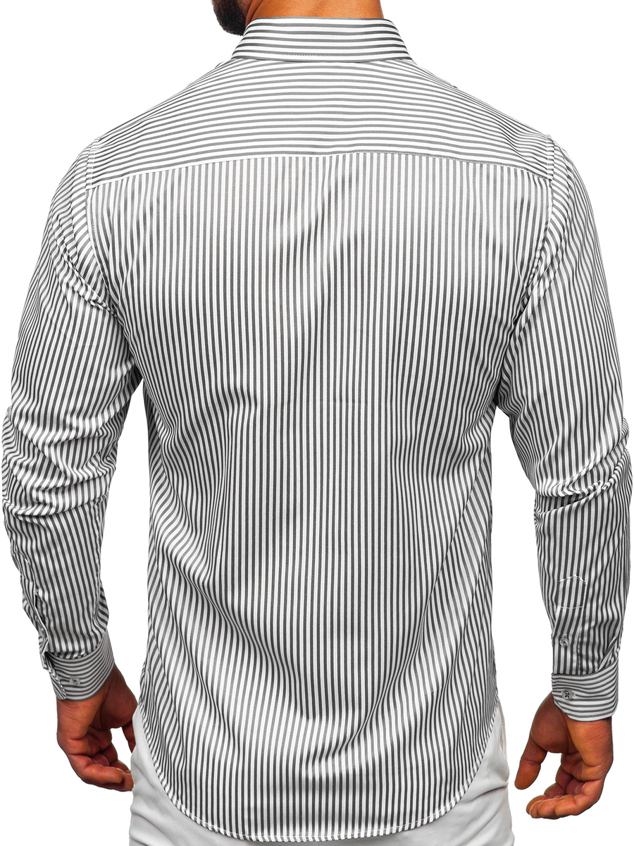 Сива мъжка раирана риза с дълъг ръкав Bolf 22731