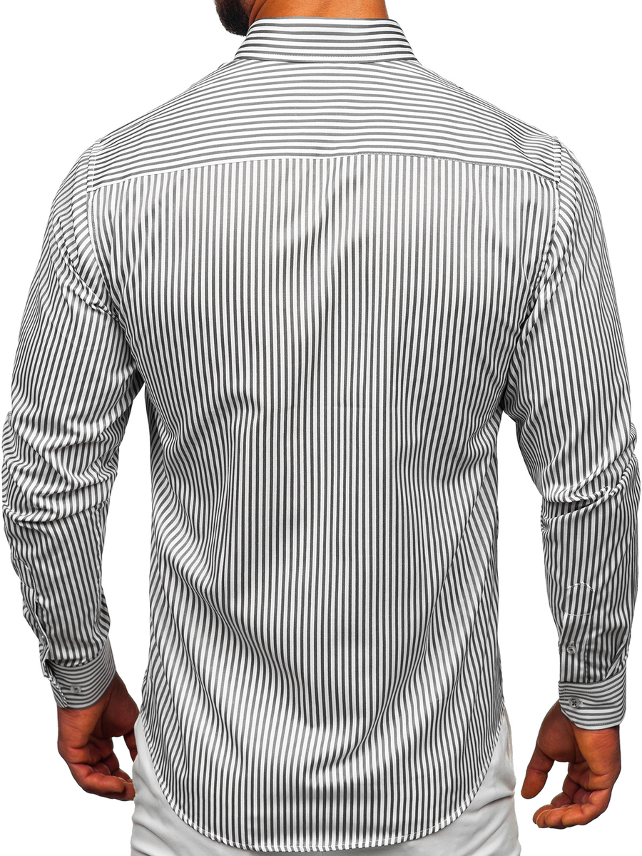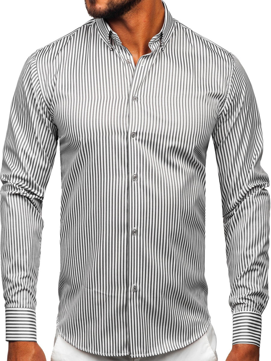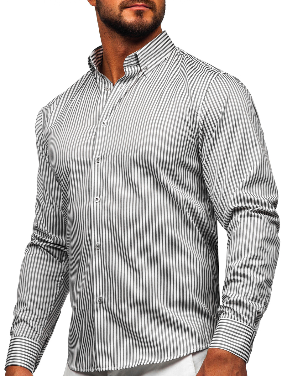 Отзиви и мнения на потребители за Графитена мъжка раирана риза с дълъг ръкав Bolf 22731