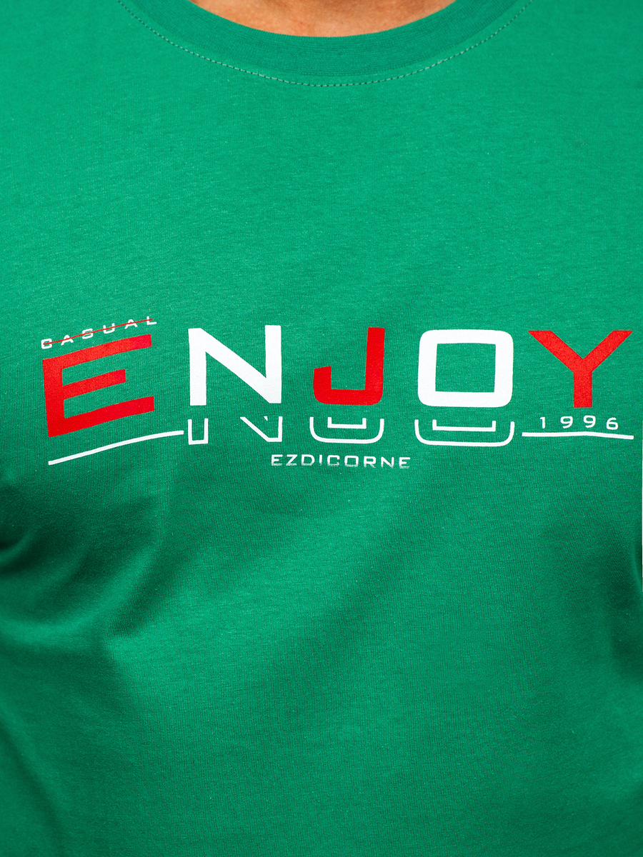 Отзиви и мнения на потребители за Зелена памучна мъжка тениска с принт Bolf 14739