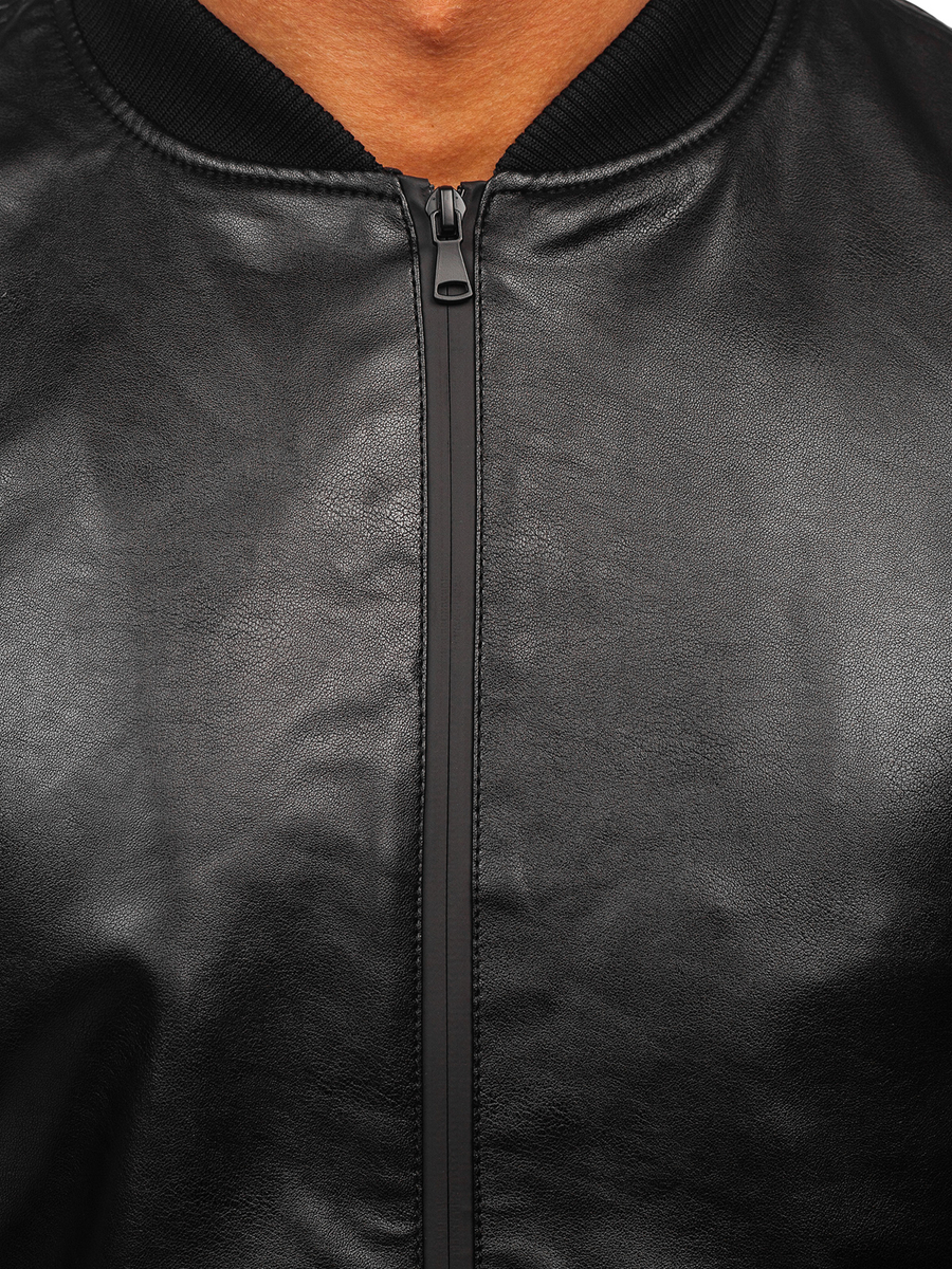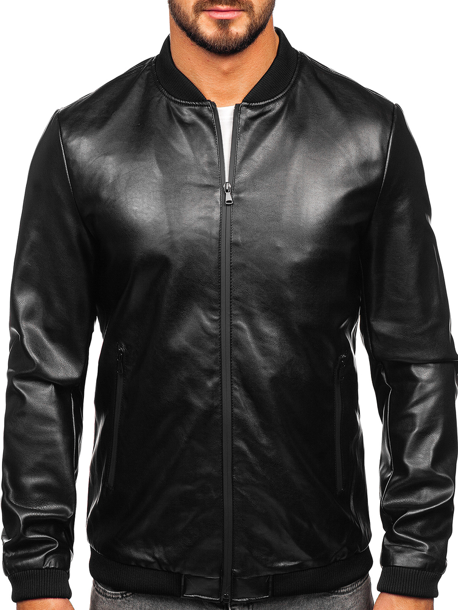 Черно кожено мъжко яке бомбър Bolf 6803A
