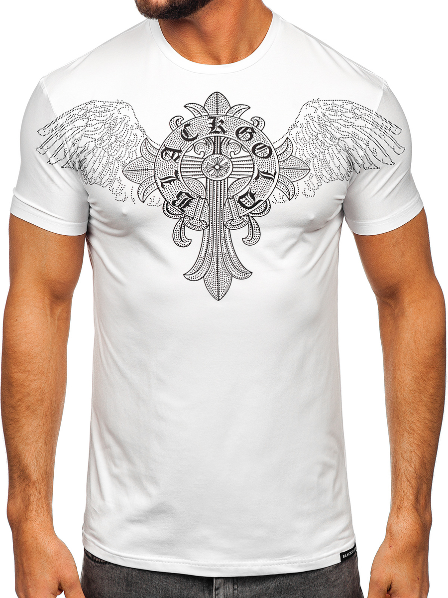Отзиви и мнения на потребители за Бяла мъжка тениска с принт z cekinami Bolf MT3037