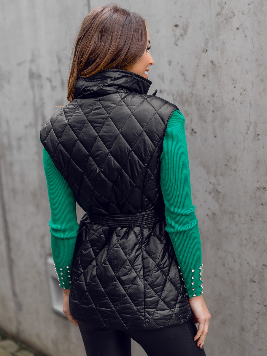 Черният дамски дълъг ватиран елек Bolf JIN221А е изключително модерно предложение за преходния сезон. Капитонираният елек се закопчава с тик-так копчета, има яка и колан. Двата външни джоба допринасят за практичността му. Изработен е от 100% полиестер, което го прави изключително удобен. Може успешно да замени преходното яке или суичъра, осигурявайки защита срещу студ и вятър. Елекът може да се използва като основа за много модни стилове. Ще изглежда страхотно с долнище и суичър , създавайки спортен, свободен outfit.