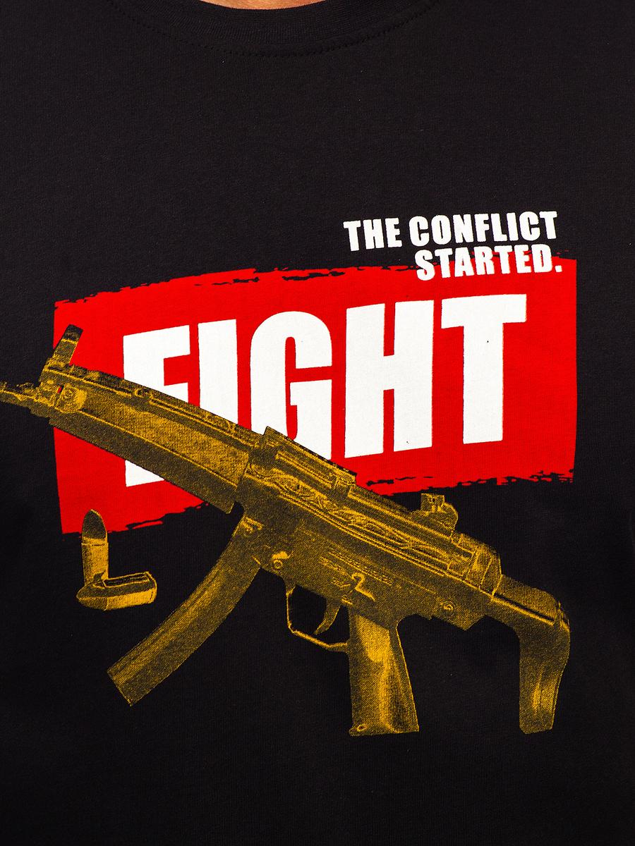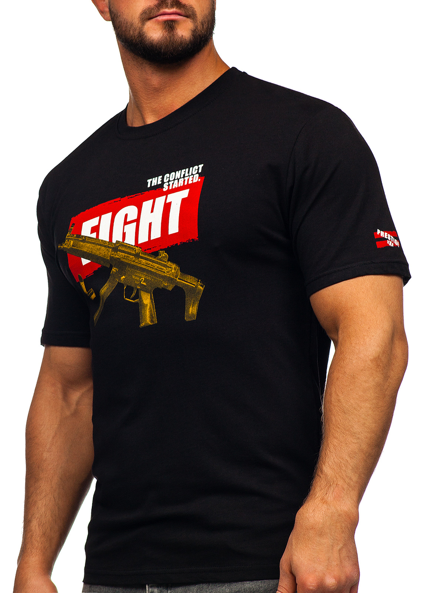 Отзиви и мнения на потребители за Черна памучна мъжка тениска с принт Bolf 14709