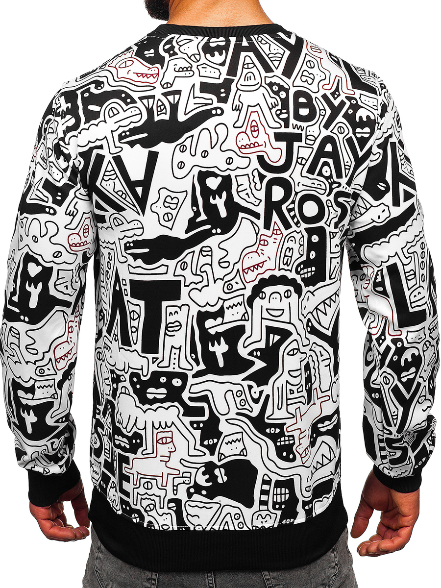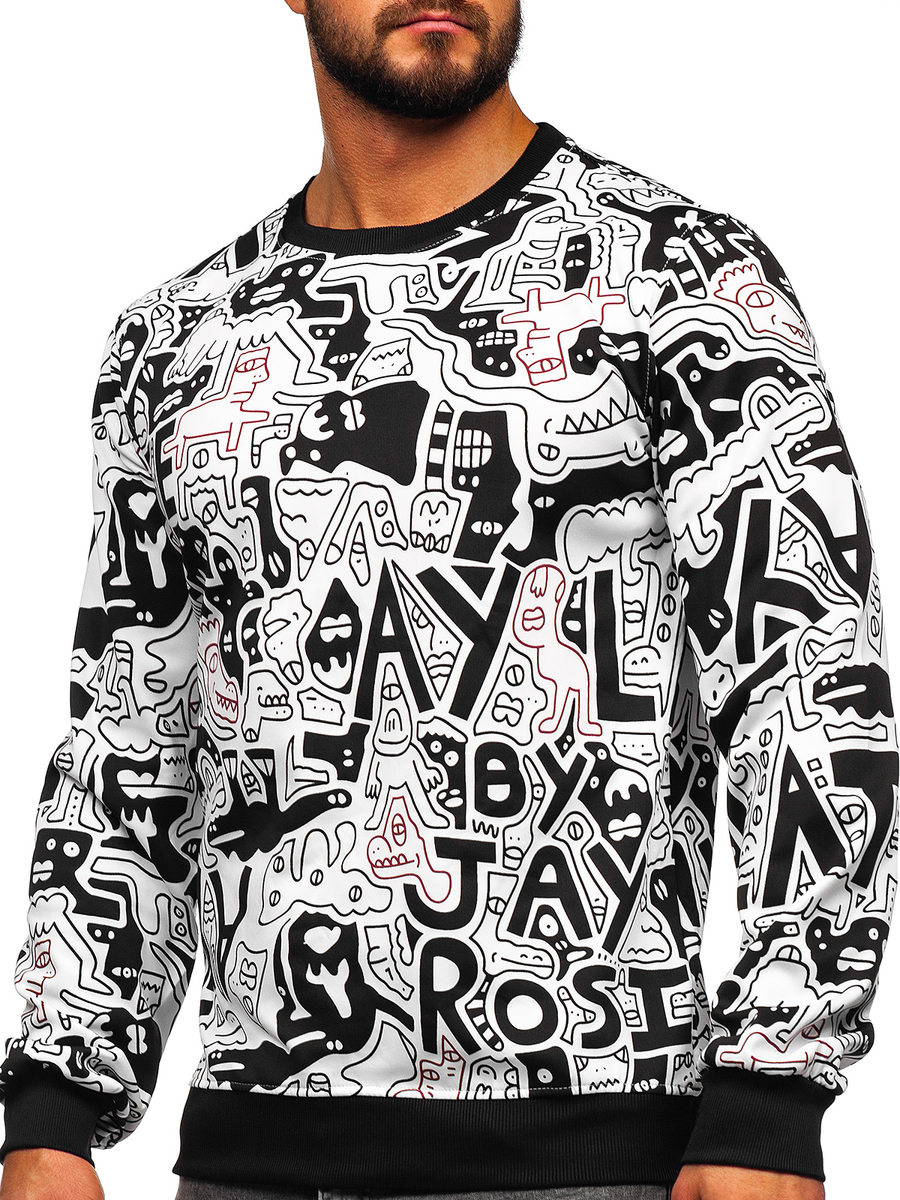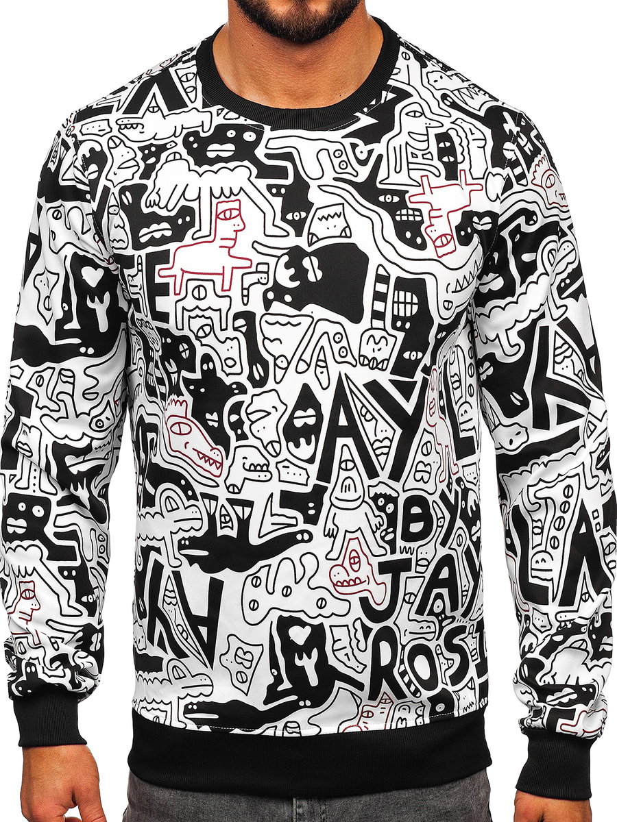 Отзиви и мнения на потребители за Черно-бял мъжки суитшърт без качулка, с принт Bolf 8B1133