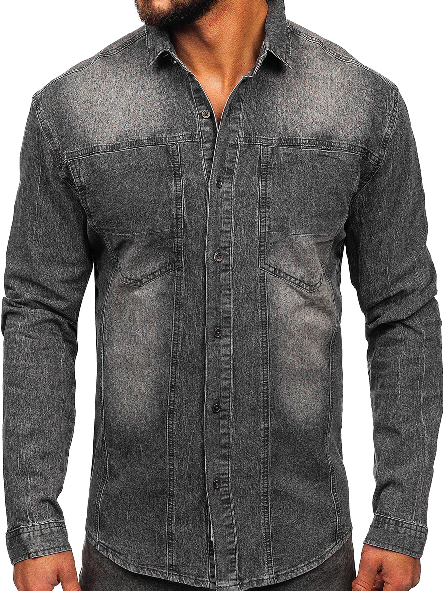 Отзиви и мнения на потребители за Мъжка дънкова риза с дълъг ръкав в цвят графит Bolf MC712G