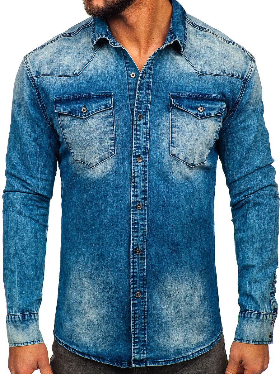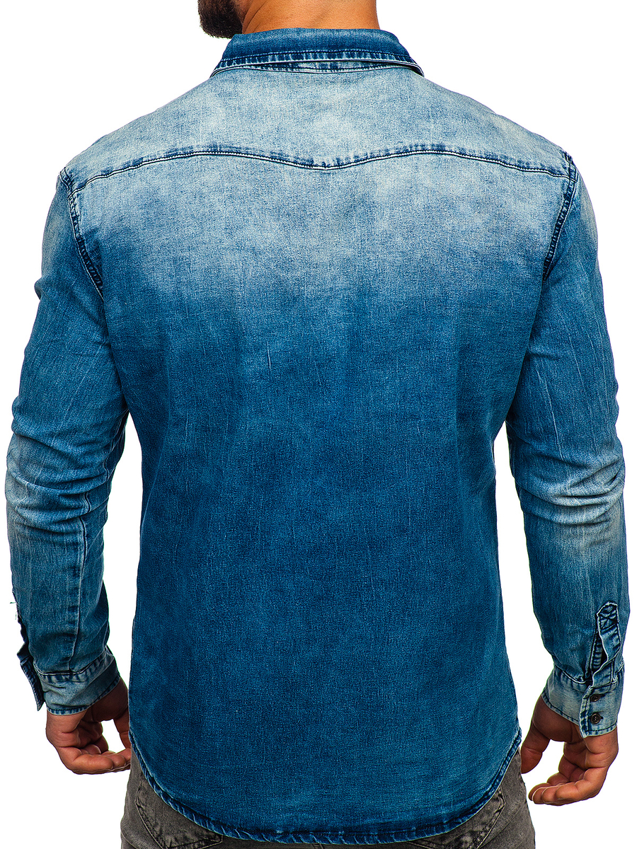 Отзиви и мнения на потребители за Мъжка дънкова тъмносиня риза с дълъг ръкав Bolf MC710BS