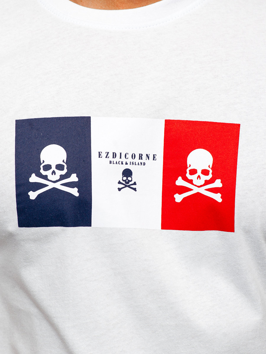 Отзиви и мнения на потребители за Бяла памучна мъжка тениска с принт Bolf 14784