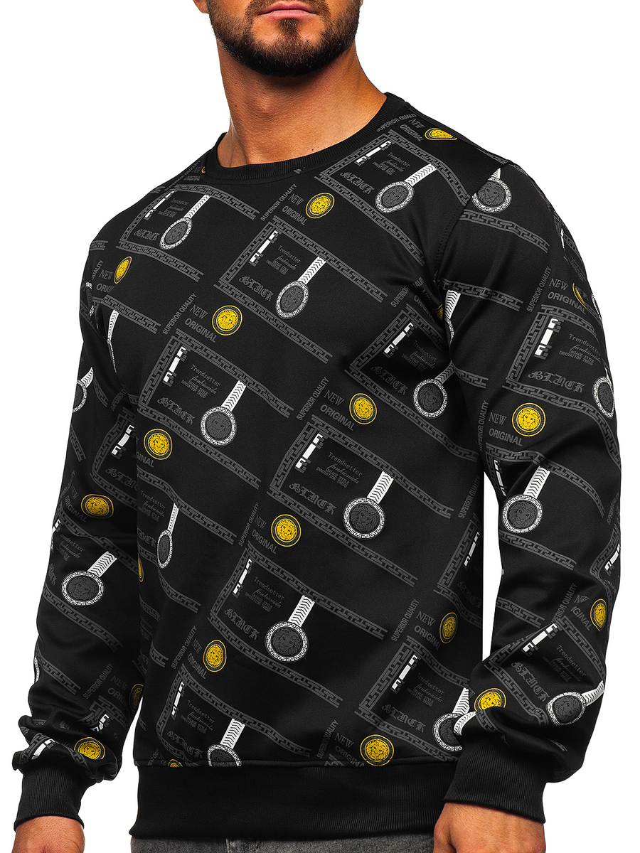 Отзиви и мнения на потребители за Черен мъжки суитшърт без качулка с принт Bolf 8B1110