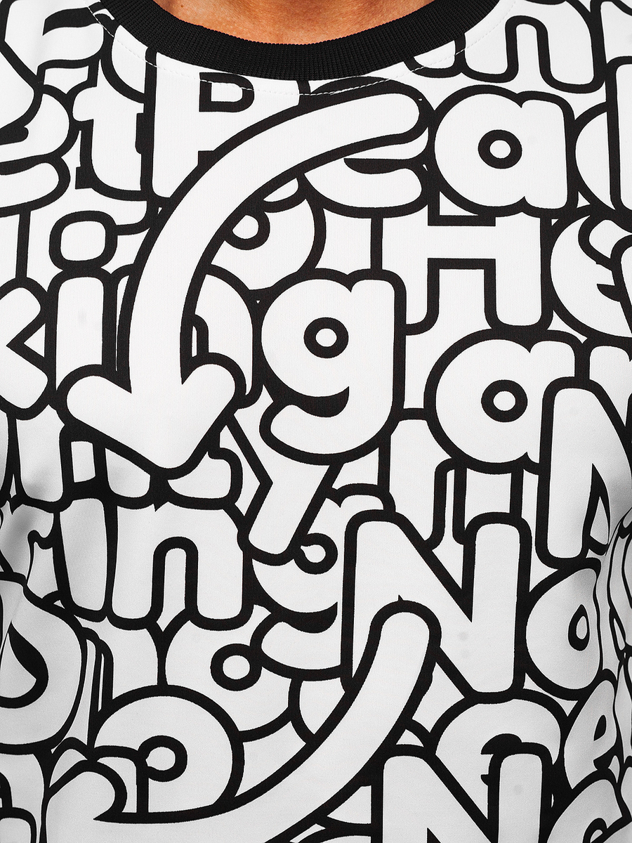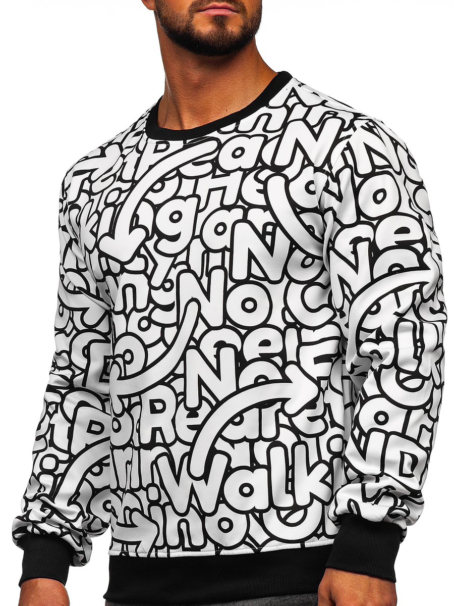 Отзиви и мнения на потребители за Чернo-бял мъжки суитшърт без качулка с принт Bolf 8B1137