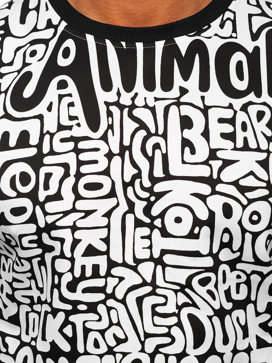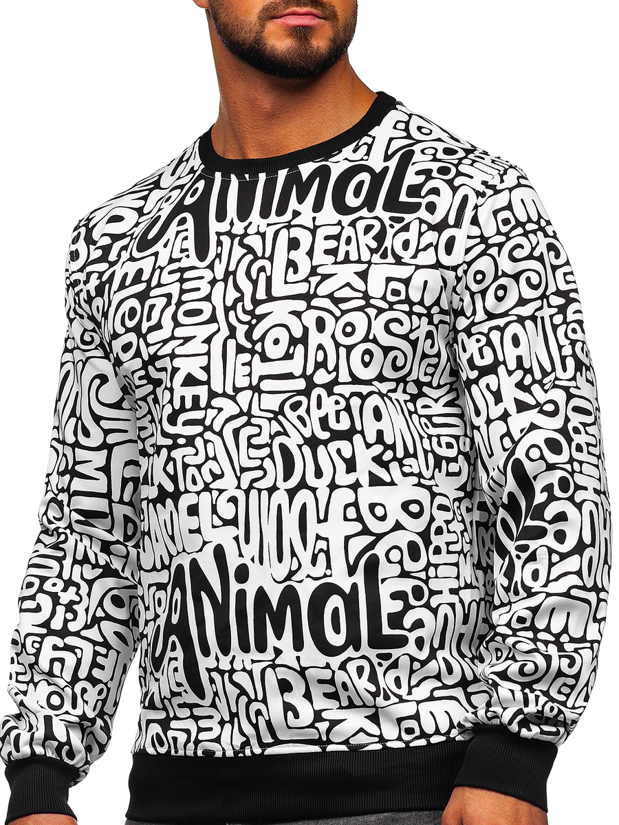 Чернo-бял мъжки суитшърт без качулка с принт Bolf 8B1131