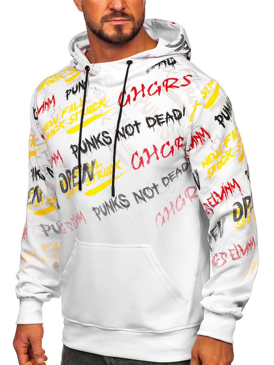 Отзиви и мнения на потребители за Бял мъжки суитшърт с качулка и принт Bolf 8B997
