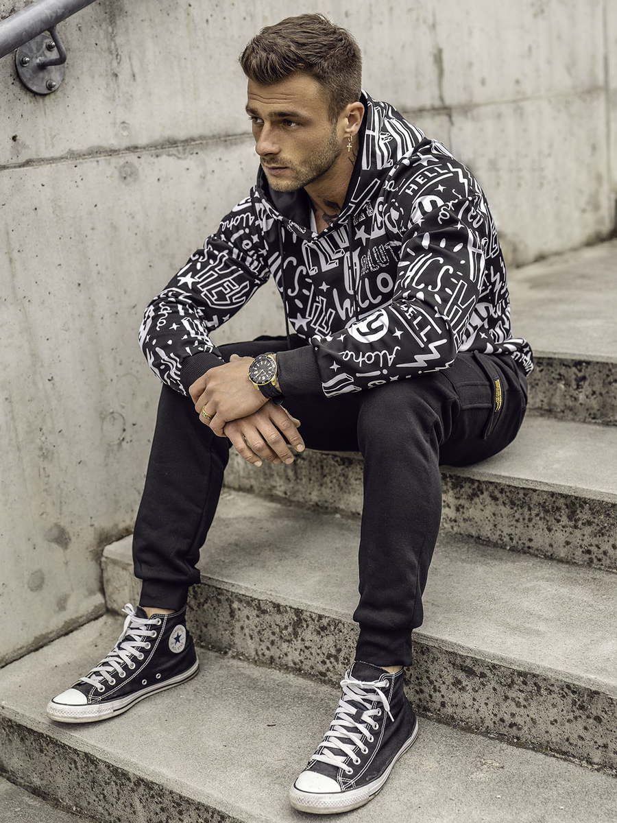 Отзиви и мнения на потребители за Черен мъжки суитшърт с качулка и принт Bolf 8B1150