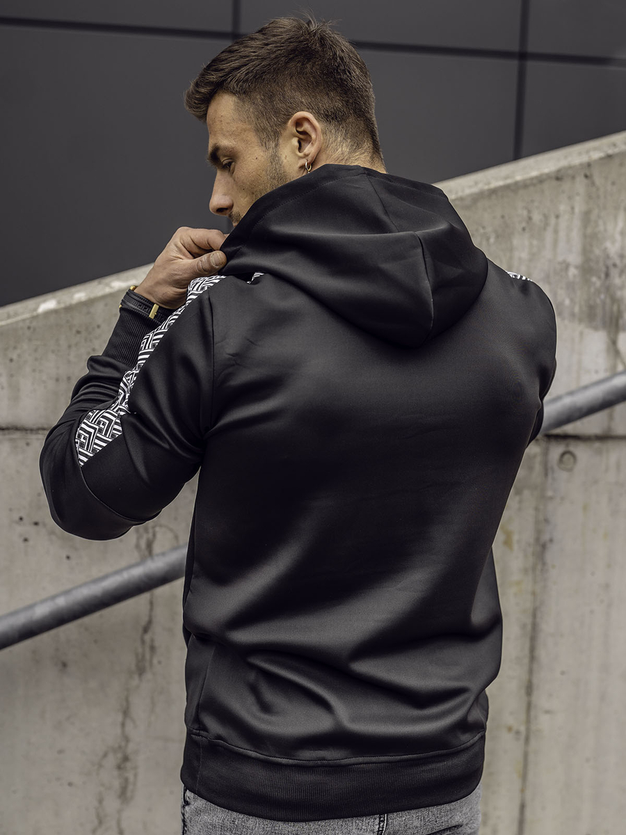 Отзиви и мнения на потребители за Черен мъжки суитшърт с качулка и принт Bolf 8B996