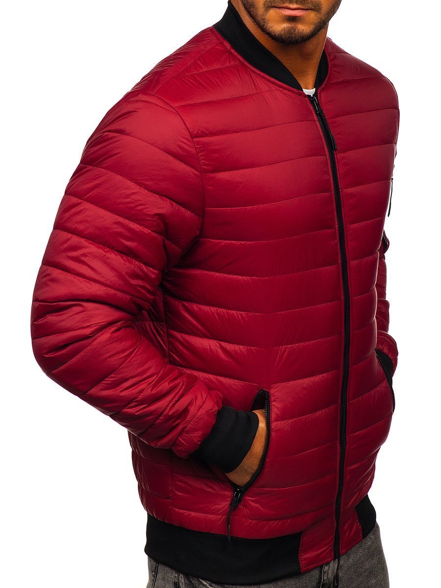 Мъжкото преходно бомбър яке в цвят бордо Bolf MY-02A е капитонирано с хоризонтални райета. Закопчава се с цип. Якето бомбър е идеално както за спортни и всекидневни, така и за улични стилизации. Има практична висока яка. Има два външни джоба с цип и един допълнителен джоб с цип на левия ръкав. Ръкавите, долната част и яката са завършени с маншет в контрастен черен цвят. Благодарение на своята изчистеност и универсалност, якето може да се носи през много сезони. Якето се вписва идеално в съвременните модни тенденциие, тъй като е изработено от приятна на допир лека и топла материя. Якето в спортен стил е подходящо за по-студените дни, в началото на пролетта и есента. Предлага се в широка гама от цветове, което ще ви позволи лесно да го комбинирате с други дрехи.