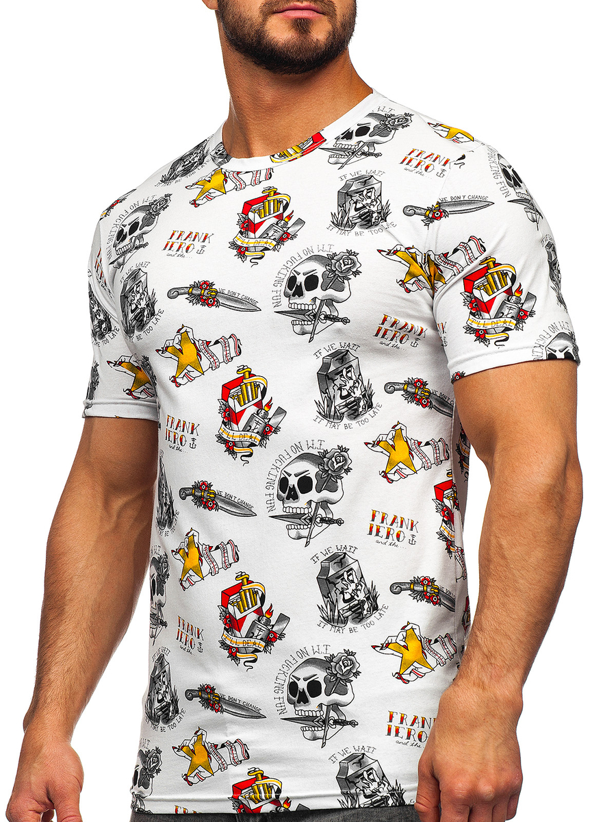 Отзиви и мнения на потребители за Бяла памучна мъжка тениска с щампа Bolf 14963