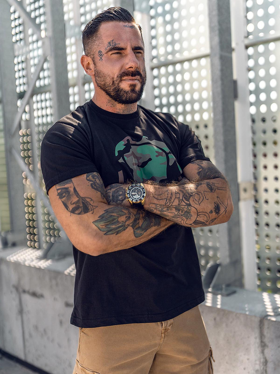 Черната мъжка тениска с принт Bolf 192379А е идеалният избор за мъже, които ценят модата и комфорта в едно. Изработена от най-висококачествен памук, тя е мека и приятна на допир. Кръглото деколте и вталената кройка идеално подчертават фигурата, като същевременно не ограничават свободата на движенията. Печатът отпред добавя характер и индивидуалност. Независимо дали ще излизате в града с приятели, по работа или пазаруване, тази тениска ще бъде винаги подходяща. Комбинира се лесно с други дрехи. Тениската изглежда страхотно с дънки, джогъри или къси панталони.