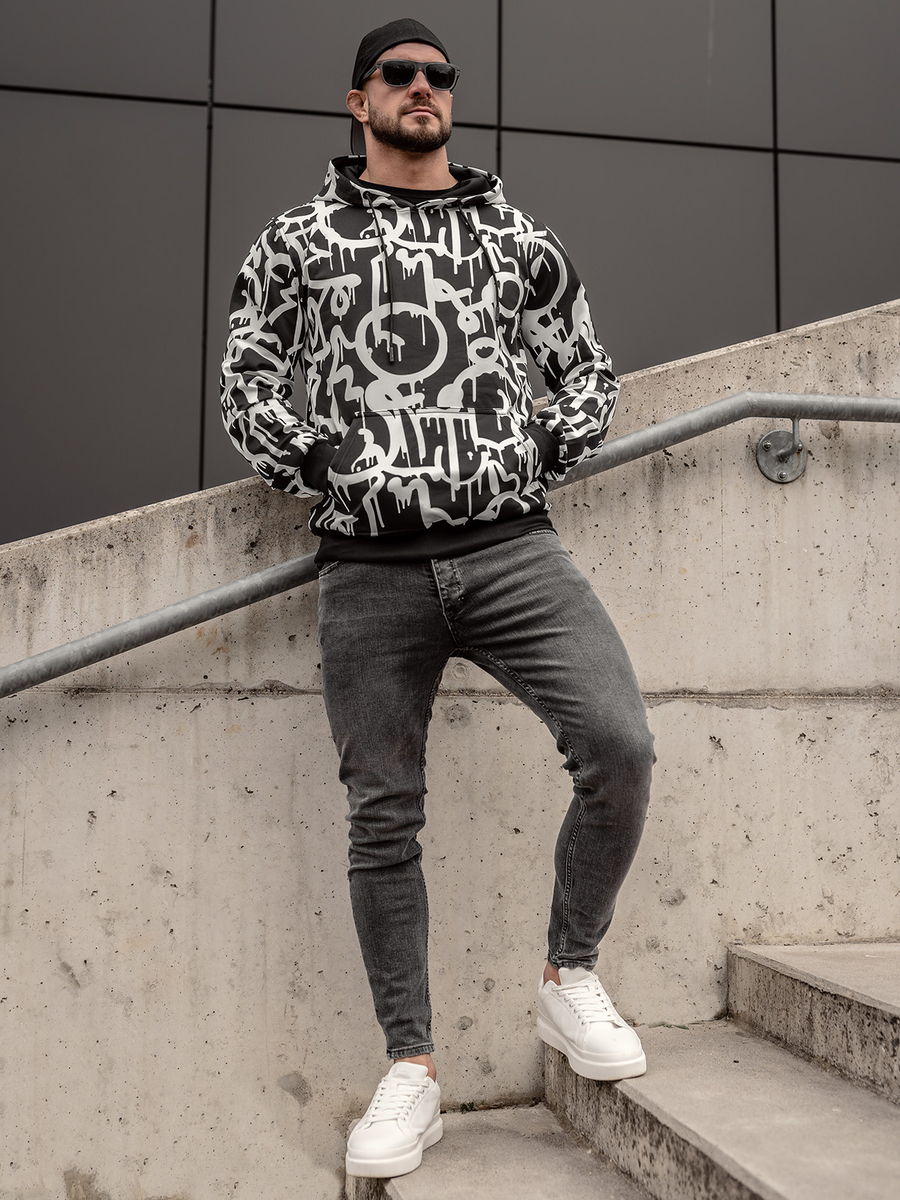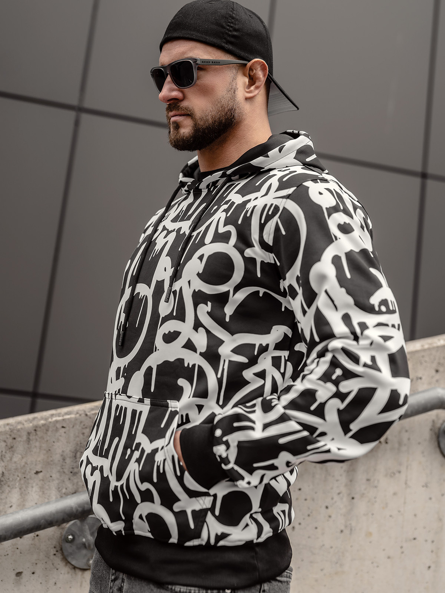 Любител ли сте на суичърите и интересните десени? Тогава мъжкият черно-бял суичър Bolf 8B1152A е за Вас! Класическата кройка на суичъра, регулируемата качулка и просторният кенгуру джоб ще осигурят пълен комфорт при носене. Долният подгъв и ръкавите са завършени с щрик, благодарение на което чудесно стои на фигурата. Изработен е от много приятна и еластична материя. Благодарение на суичъра Bolf 8B1152 ще се откроите дори когато си почивате у дома. Суичърът ще изглежда фантастично както с долнище, така и с дънки.