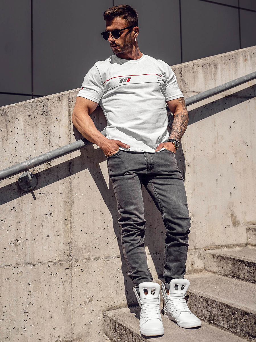 Отзиви и мнения на потребители за Бяла мъжка памучна тениска с принт Bolf 14772A