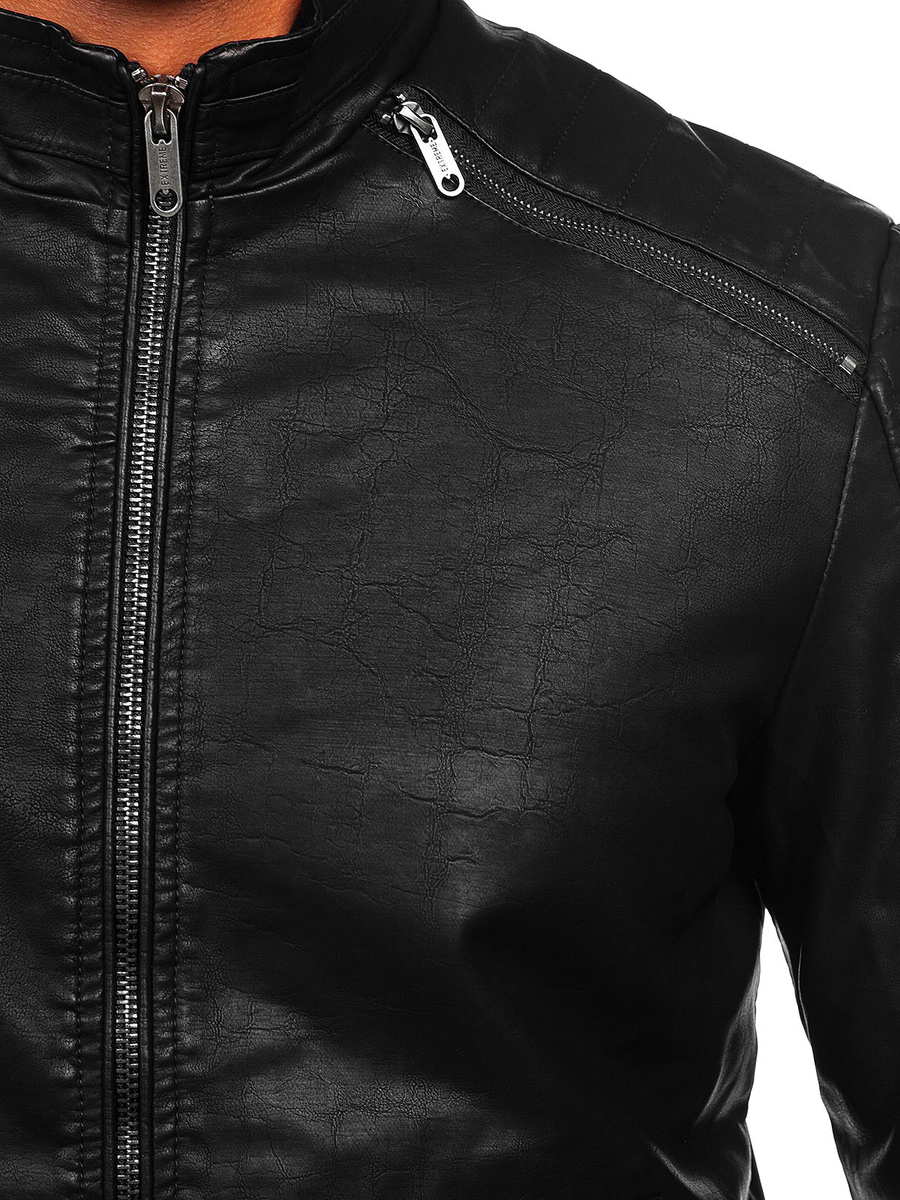 Черното мъжко кожено яке Bolf EX229 е класическо облекло, което никога не излиза от мода и добавя шик към всеки стайлинг. Изработено е от висококачествена материя, което го прави леко и удобно. Черният цвят му придава непреходен характер и в същото време е отлична основа за различни стилове, както ежедневни, така и по-официални. Комбинирай го с t-shirt и панталон slim fit за създаване на модеарн, ежедневна визия.