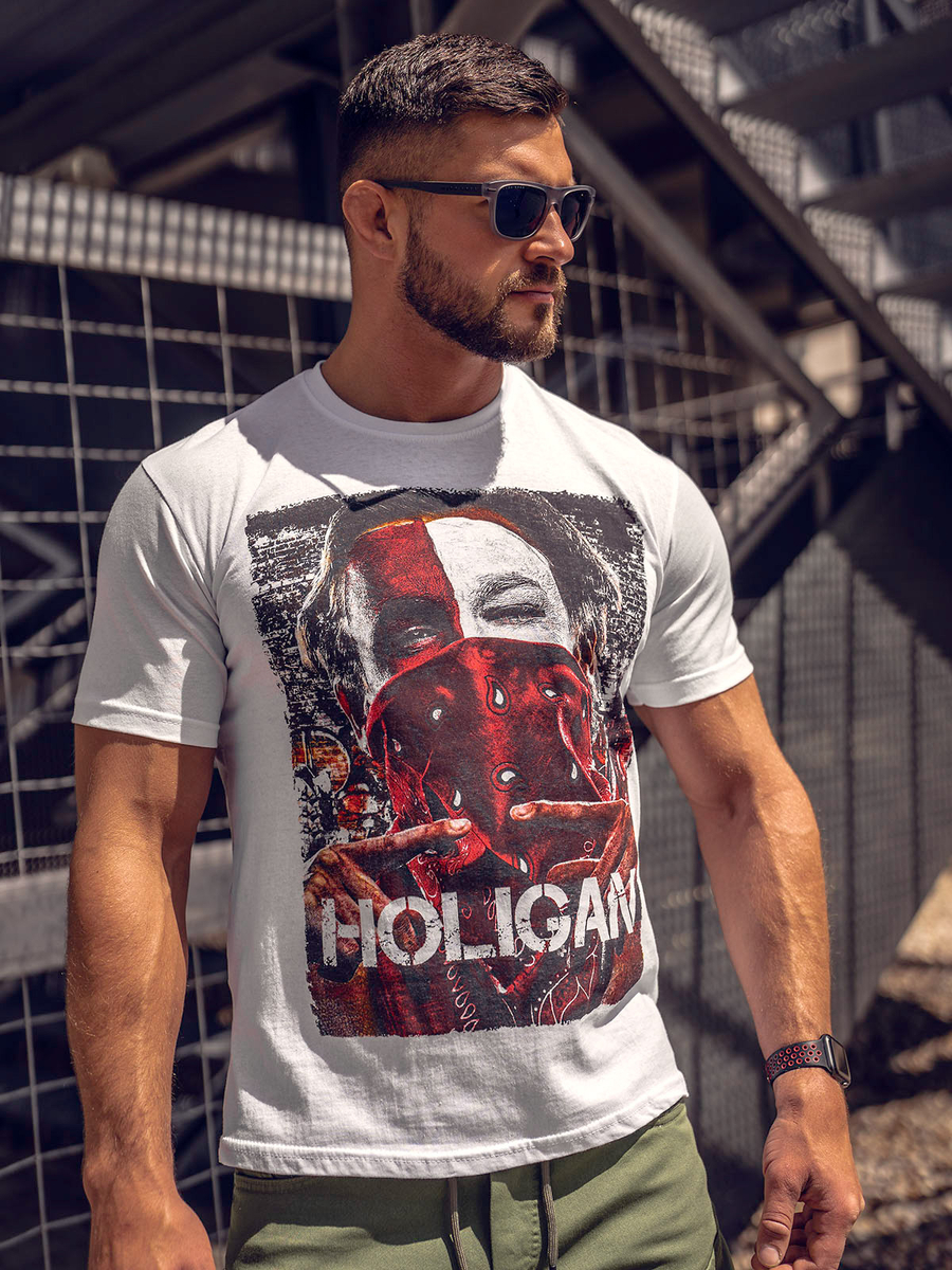 Отзиви и мнения на потребители за Бяла памучна мъжка тениска с щампа Bolf CMR18A