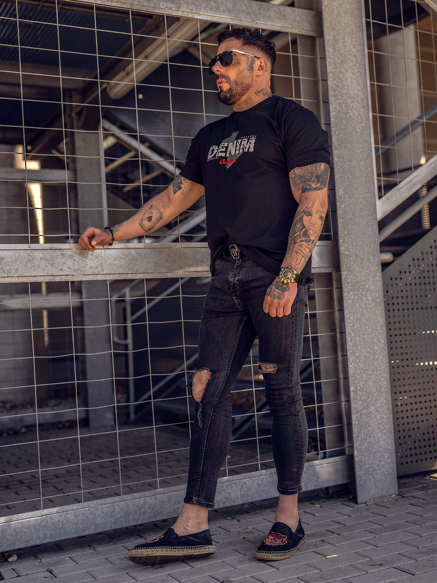 Отзиви и мнения на потребители за Черна мъжка памучна тениска с принт Bolf 14791A