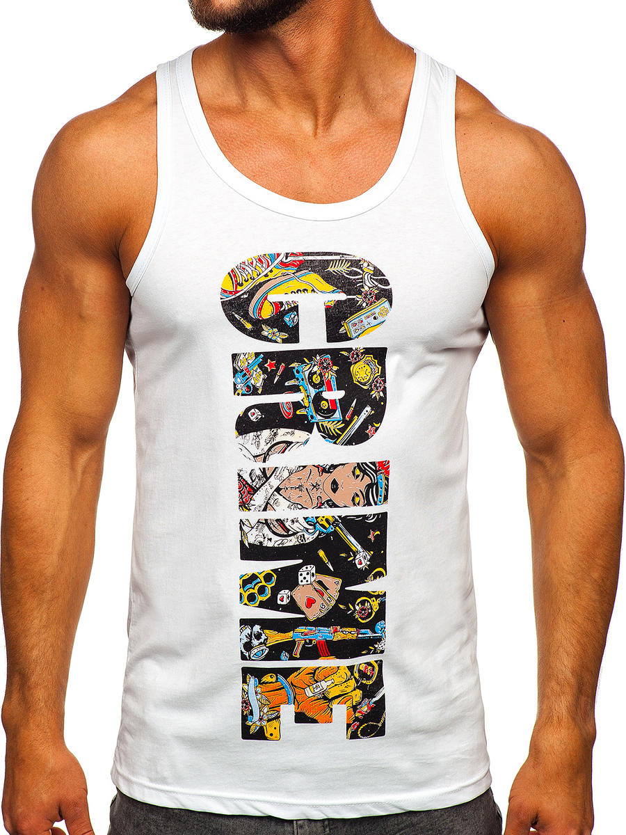 Бял мъжки потник с принт Bolf 143031