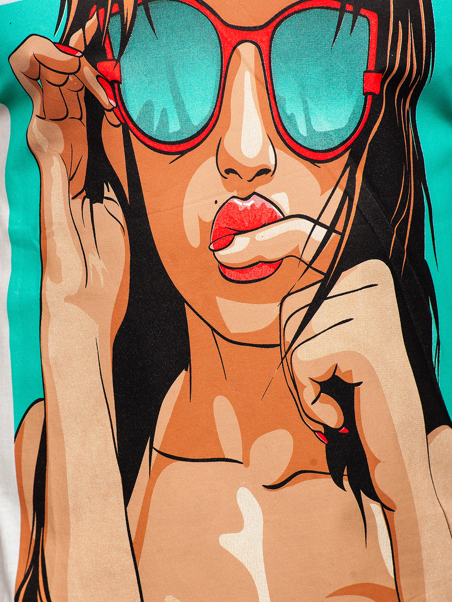 Белият потник с щампа Bolf 143027 е чудесен избор за топлите дни. Изработени са от мека, приятна на допир материя. Правата кройка идеално подчертава фигурата, осигурявайки свобода на движение и оптимална циркулация на въздуха. Принтът отпред придава моден характер. Независимо от повода, дали е разходка из града, тренировка във фитнеса или среща с приятели, потникът Bolf 143027 ще бъде идеалният избор. Ще изглежда страхотно за небрежен стайлинг в комбинация с дънки, както и по-спортен в съчетание със суитшърт и спортно долнище.