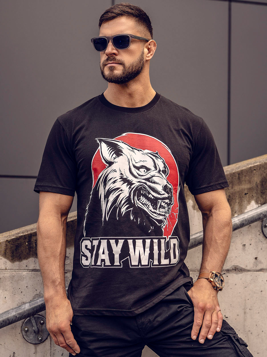 Черна памучна мъжка тениска с принт Bolf 143021A