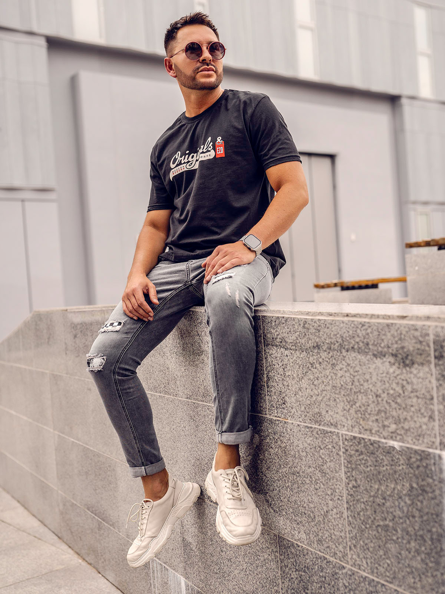 Отзиви и мнения на потребители за Черна памучна мъжка тениска с принт Bolf 14780A
