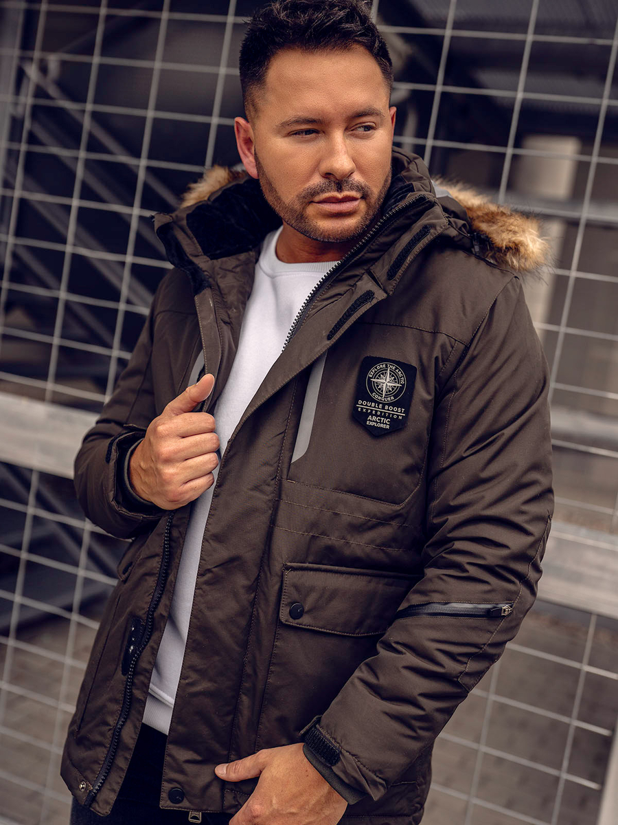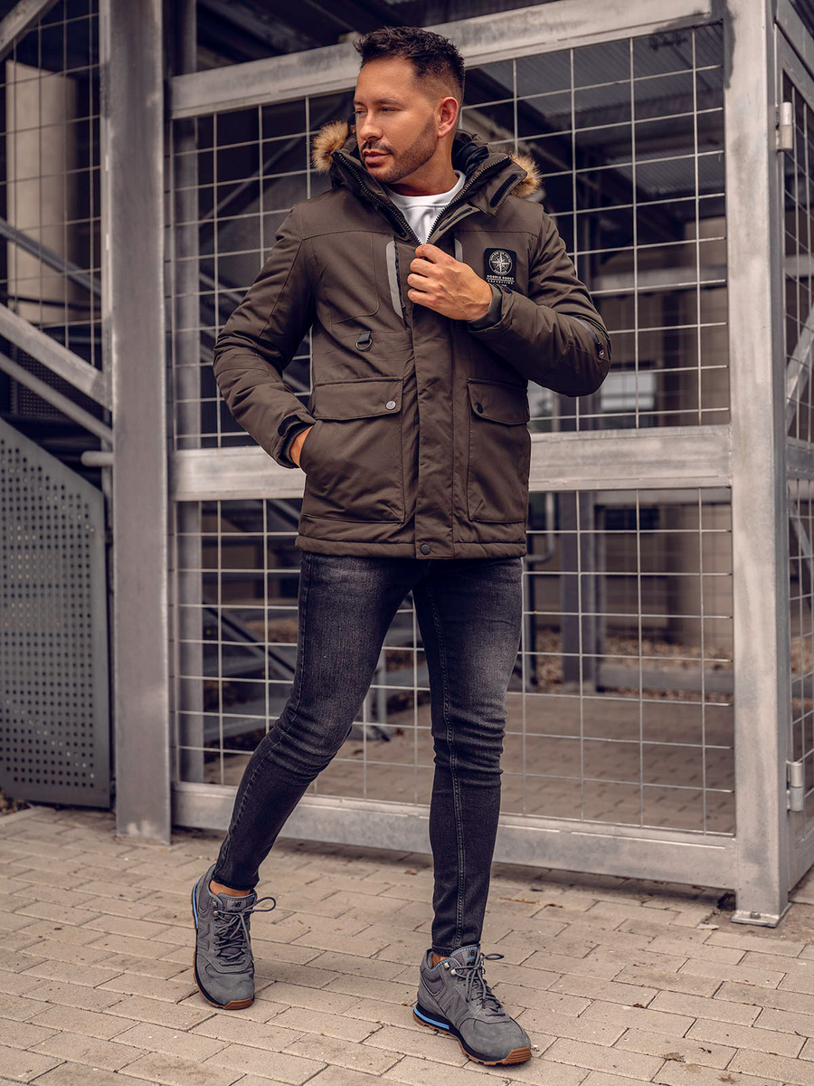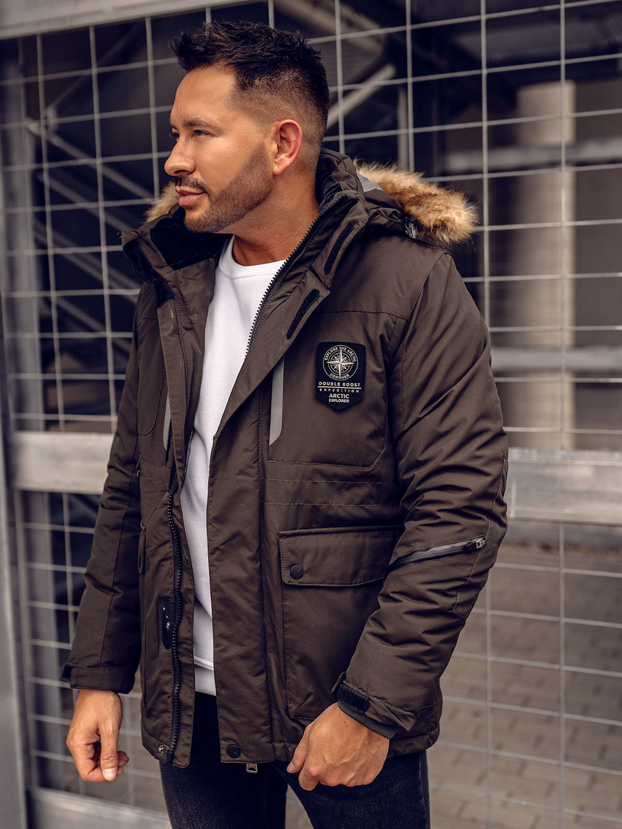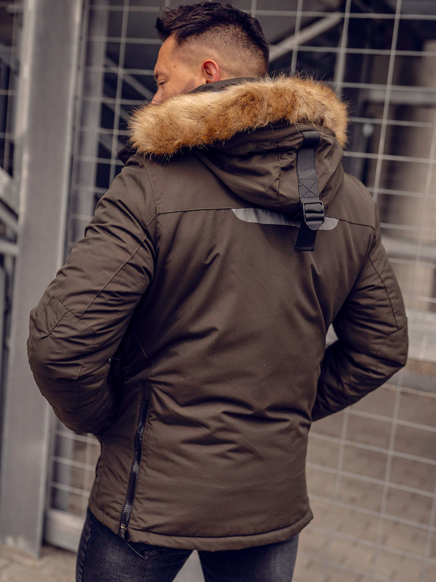 Практични и топли черни зимни якета Bolf. Имат 6 големи джоба и подвижна качулка с изкуствен косъм. Перфектен за студените дни, има маншети на ръкавите, двойно закопчаване и шнур от вътрешната страна. Зеленото мъжко яке се съчетава добре с дебел пуловер и дънки.