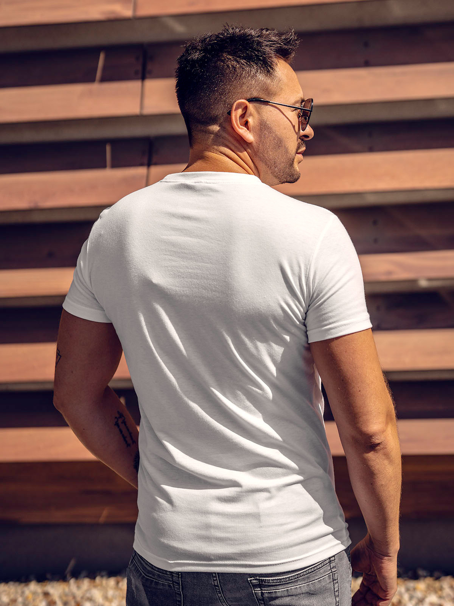 Мъжката тениска с джоб и камуфлажен принт Bolf 8T85А е идеално предложение за феновете на военните дизайни. Има кръгло деколте и стои добре на фигурата. Малкото джобче на гръдния кош ѝ придава характер и привлича погледите, благодарение на контрастните цветове. Универсалният цвят на тениската улеснява съчетаването ѝ с други дрехи и аксесоари. Изглежда еднакво добре както с дънки slim fit, така и с карго панталон. Предлага се в няколко цвята.