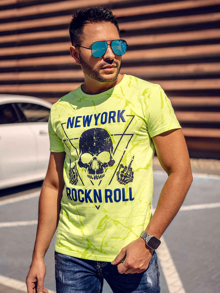 Мъжка тениска с принт в цвят жълт неон Bolf Y70030A
