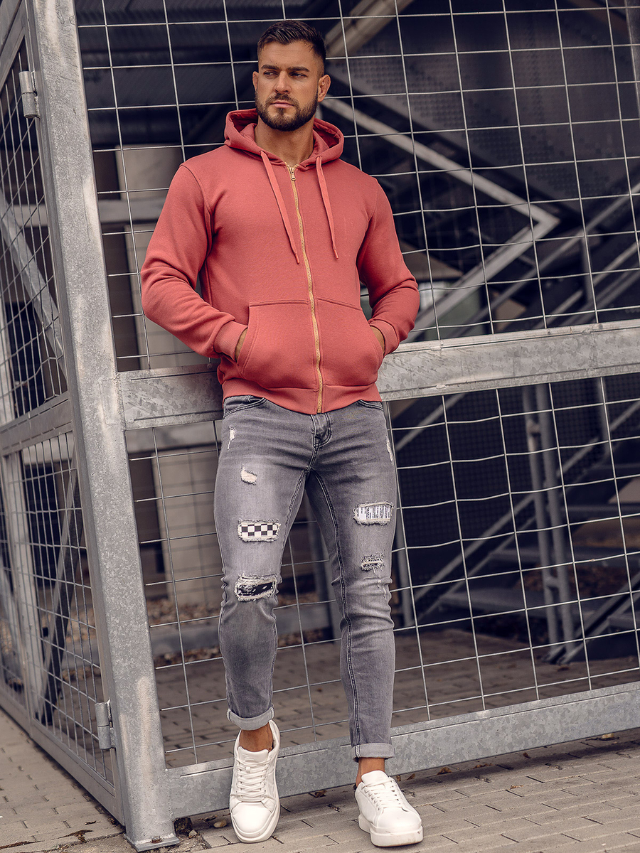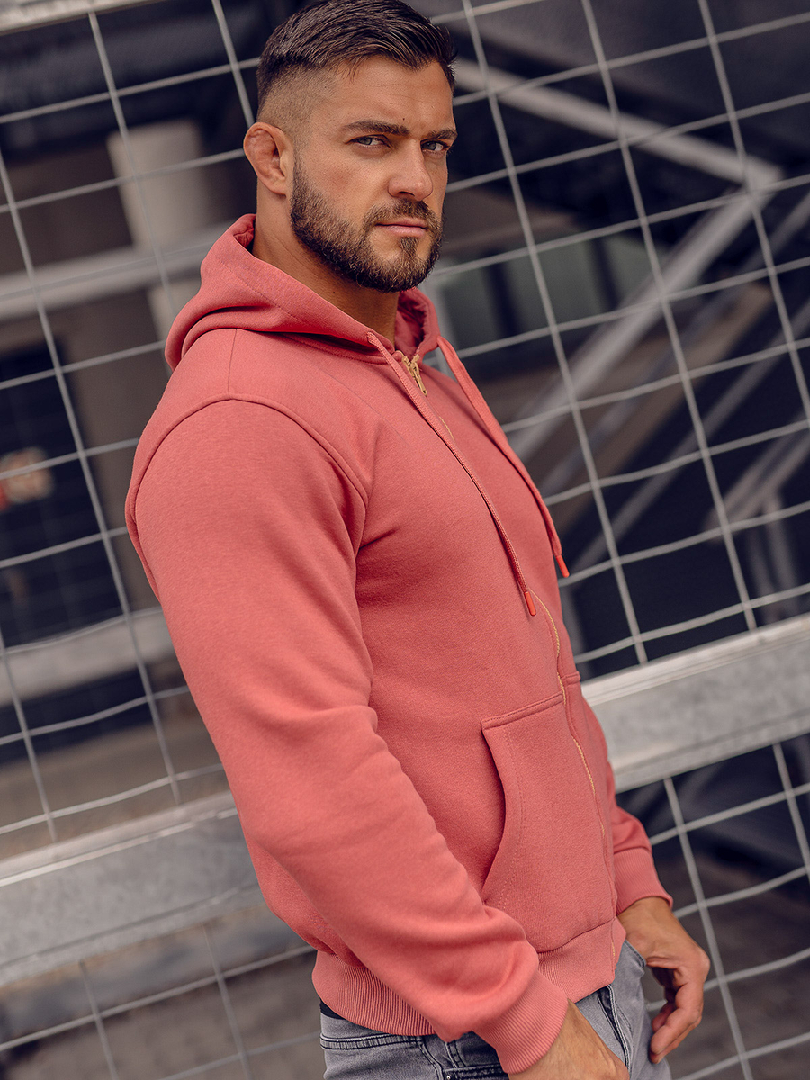 Мъжкият суичър с качулка в цвят сьомга Bolf 2008A се закопчава с цип. Това е класически суитшърт, изработен от мек, приятен на допир трикотаж. Продуктът се характеризира с много ярки цветове, в които се предлага. Има регулируема качулка в плътен цвят и странични джоба. Долният подгъв и ръкавите са завършени с ластичен маншет Суитшърът силно се препоръчва за феновете на минимализма и комфорта в модата. Ефектен и удобен. Те са задължителен елемент във всеки мъжки гардероб. Простият класически стил в интересни цветове прави този модел суитшърти идеален завършек на много ежедневни и street стилизации. Елегантният мъжки суитшърт с цип е предложение, което си струва да имате в гардероба си не в един, а дори в няколко цветови варианта. От класическото черно през сини и зелени нюанси до малко по-екстравагантни оранжеви, жълти или розови разцветки. Практичен суитшърт по всяко време на годината.