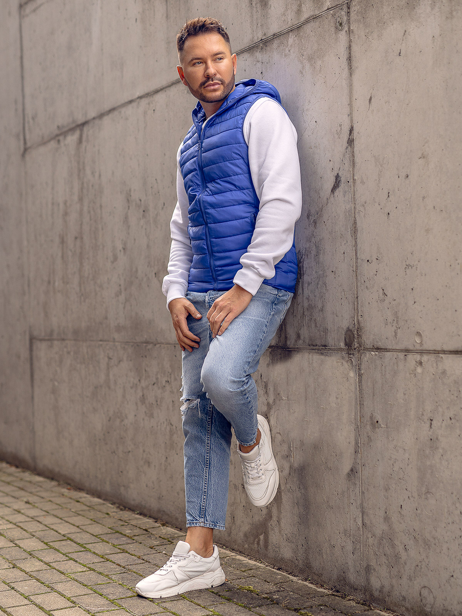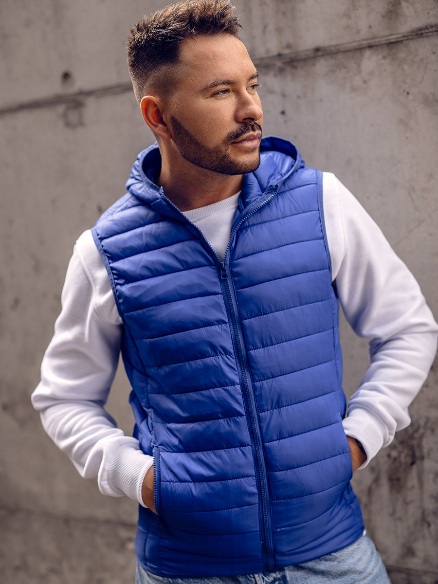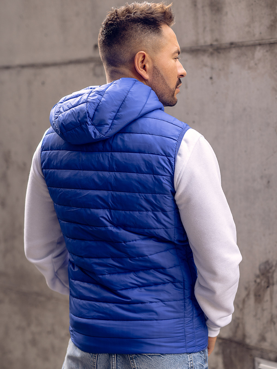 Kапитониран мъжки елек с качулка в цвят кобалт Bolf LY36A