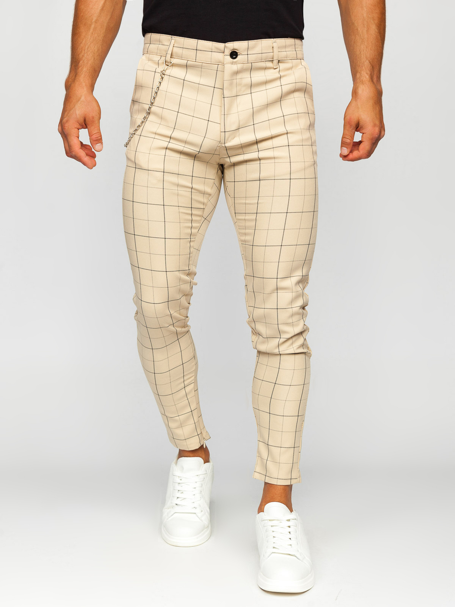 Отзиви и мнения на потребители за Мъжки бежов панталон чино на каре Bolf 0060