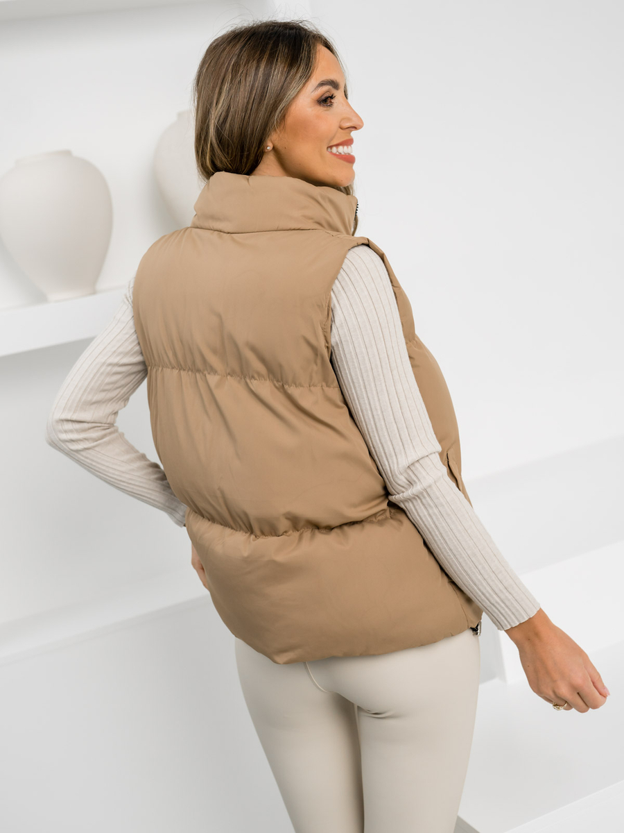 Кафяв плътен капитониран дамски елек Bolf 5M3150
