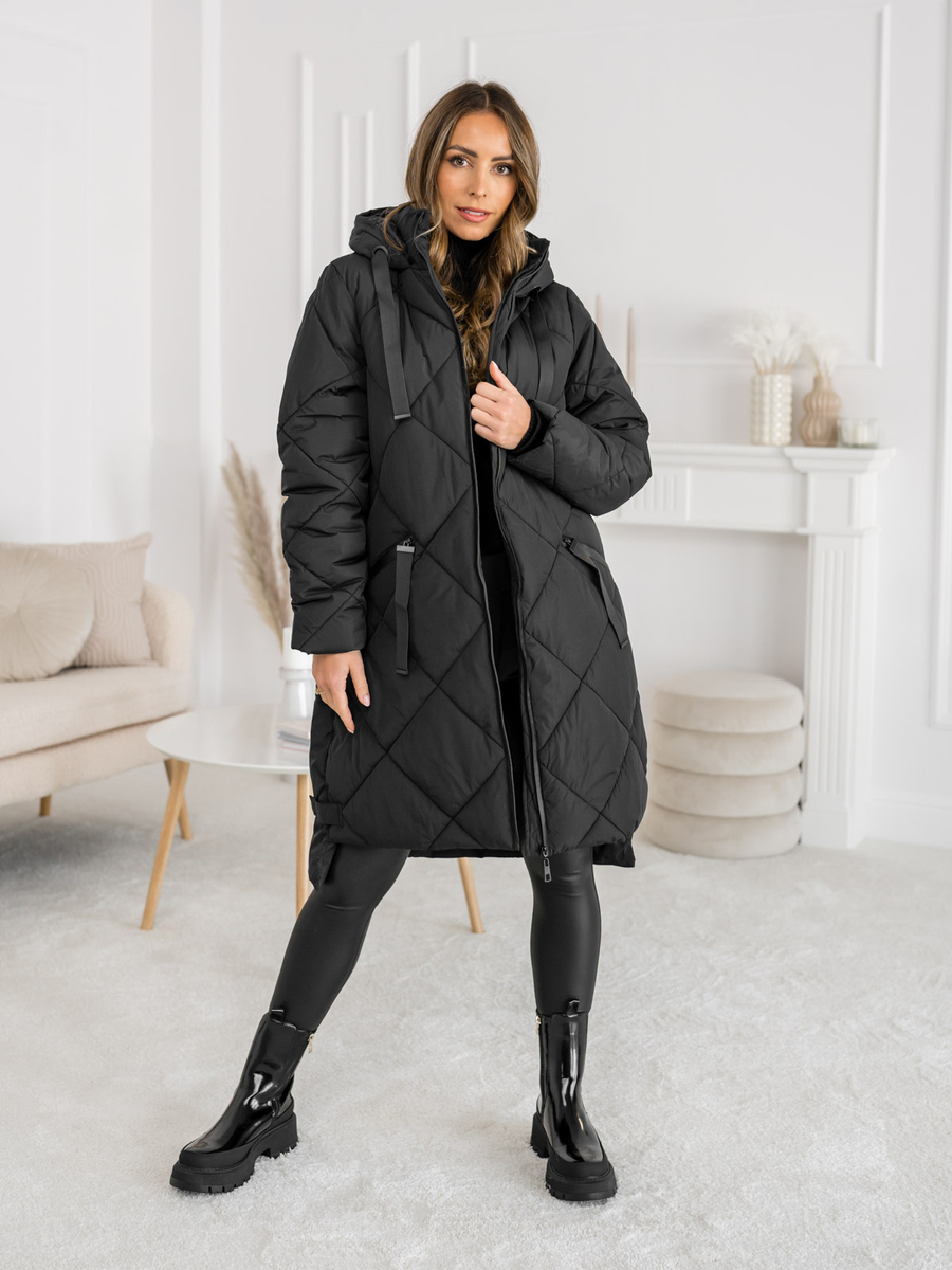 Отзиви и мнения на потребители за Черно дълго капитонирано дамско зимно яке с качулка Bolf 5M3168