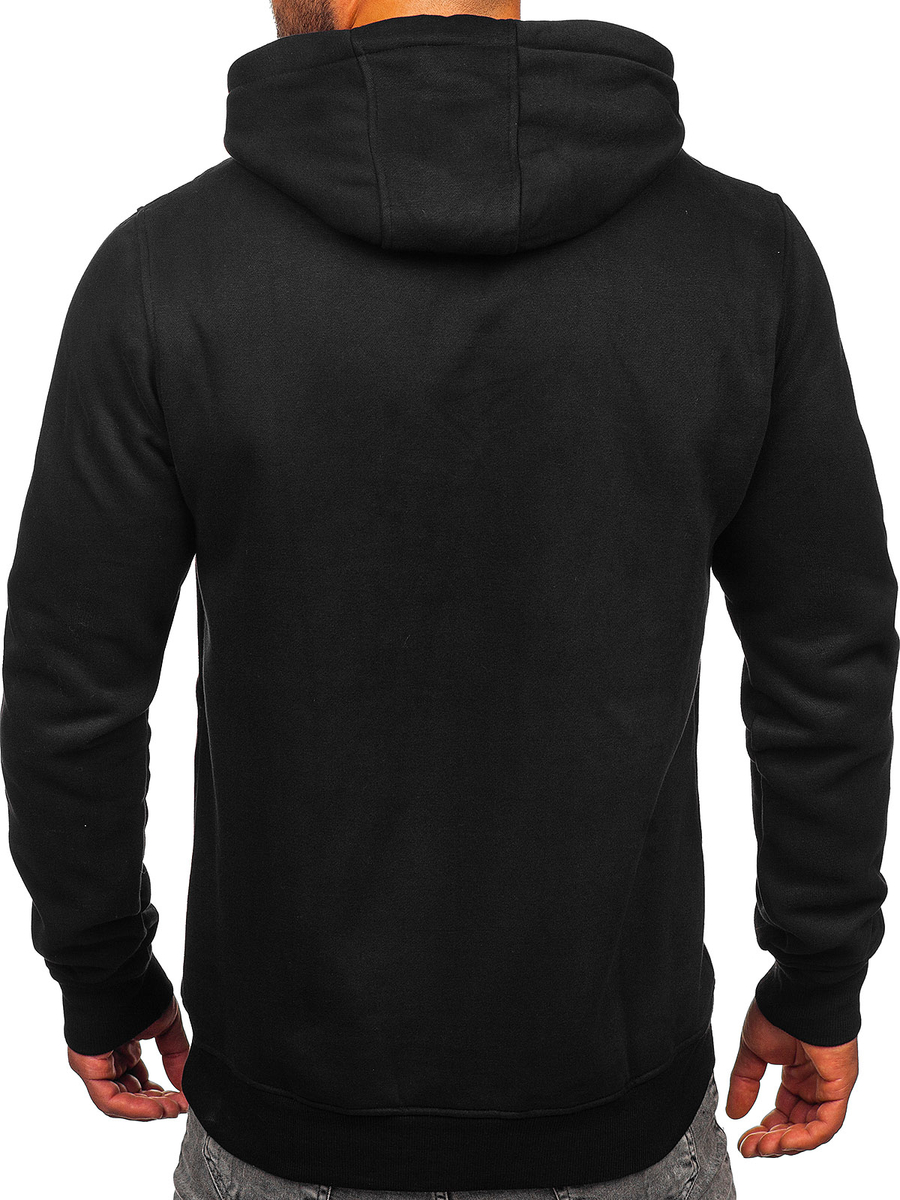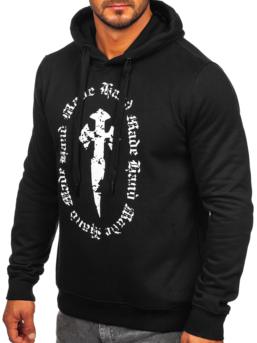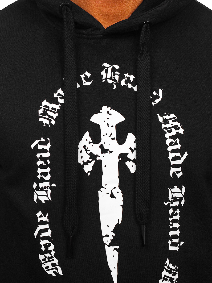 Черен мъжки суитшърт с качулка и принт Bolf MF2011