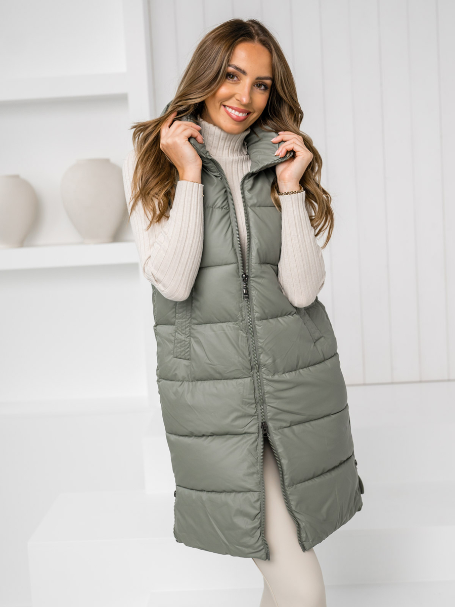 Отзиви и мнения на потребители за Зелен дълъг дамски капитониран елек Bolf R8212