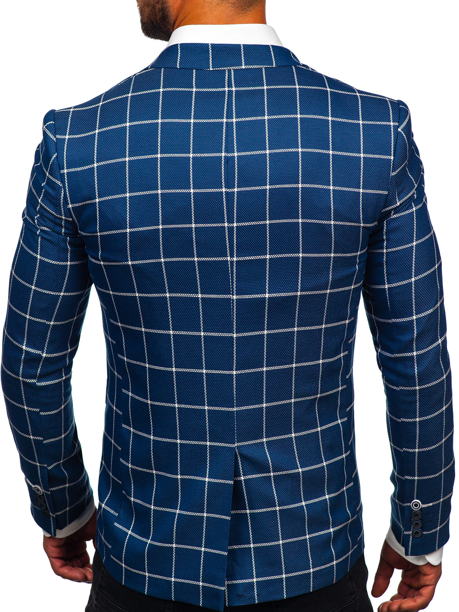 Отзиви и мнения на потребители за Синьо карирано мъжко сако casual Bolf 003